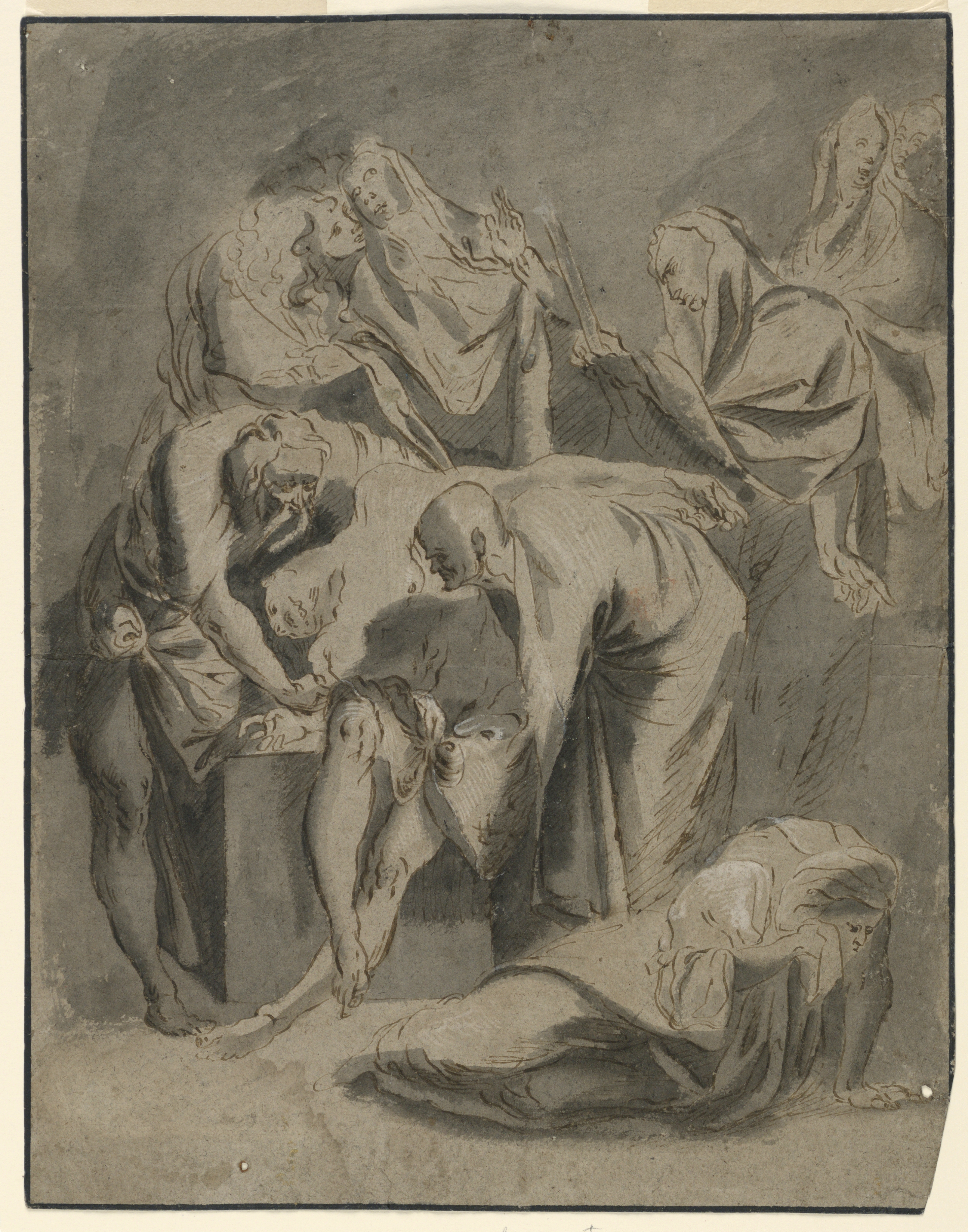 This is a Drawing. It was created by Jakob de Wit. It is dated ca. 1750 and we acquired it in 1938. Its medium is graphite, brush and wash on heavy blue paper. It is a part of the Drawings, Prints, and Graphic Design department.