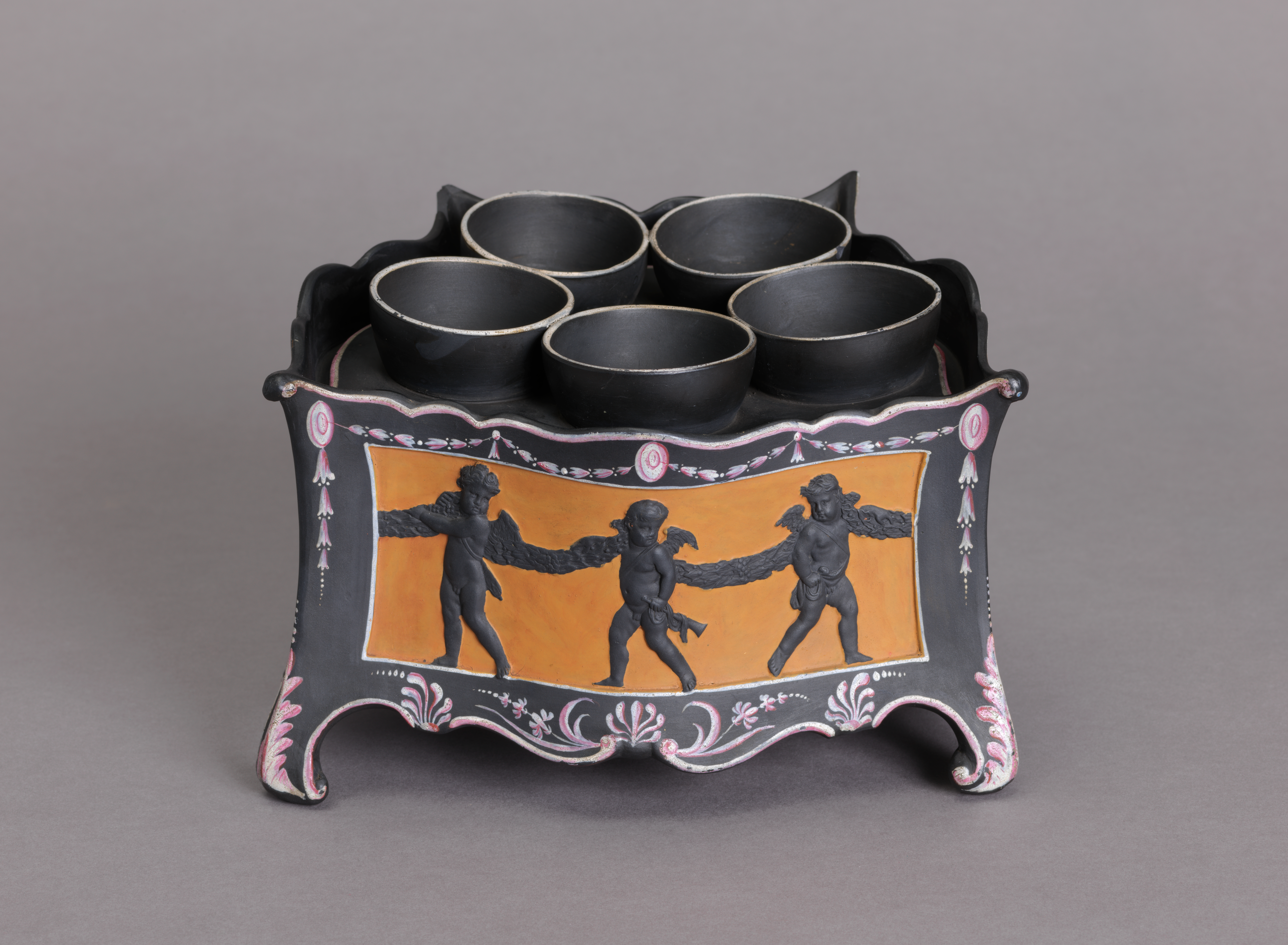 Black Basalt Bulb Pot Bulb Pot; Designed by John Flaxman (English, 1755 - 1826); Made by Wedgwood (United Kingdom); England; stoneware, enamel slip ('encaustic') decoration; H x W x D (a,b: overall): 14.4 × 21.1 × 16 cm (5 11/16 × 8 5/16 × 6 5/16 in.) H x W x D (a: pot): 14.4 × 21.1 × 16 cm (5 11/16 × 8 5/16 × 6 5/16 in.) H x W x D (b: removable collar): 3 × 17.1 × 13.5 cm (1 3/16 × 6 3/4 × 5 5/16 in.); Bequest of Erskine Hewitt; 1938-57-316-a,b