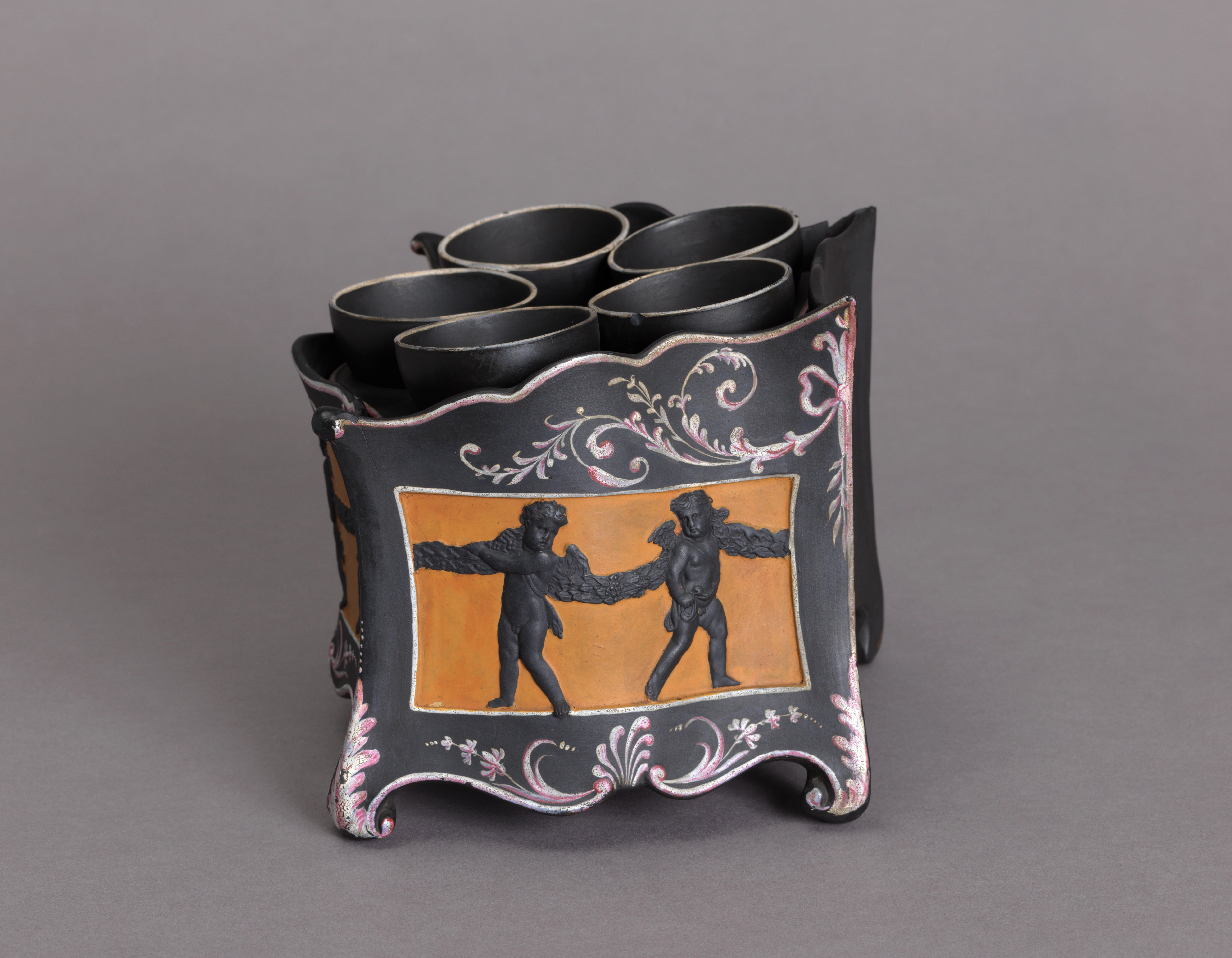 Black Basalt Bulb Pot Bulb Pot; Designed by John Flaxman (English, 1755 - 1826); Made by Wedgwood (United Kingdom); England; stoneware, enamel slip ('encaustic') decoration; H x W x D (a,b: overall): 14.4 × 21.1 × 16 cm (5 11/16 × 8 5/16 × 6 5/16 in.) H x W x D (a: pot): 14.4 × 21.1 × 16 cm (5 11/16 × 8 5/16 × 6 5/16 in.) H x W x D (b: removable collar): 3 × 17.1 × 13.5 cm (1 3/16 × 6 3/4 × 5 5/16 in.); Bequest of Erskine Hewitt; 1938-57-316-a,b