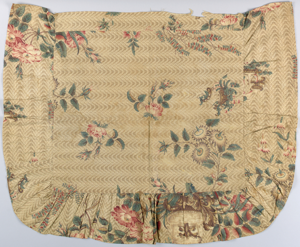 This is a Pillow cover. It is dated 19th century and we acquired it in 1938. Its medium is cotton and its technique is printed. It is a part of the Textiles department.