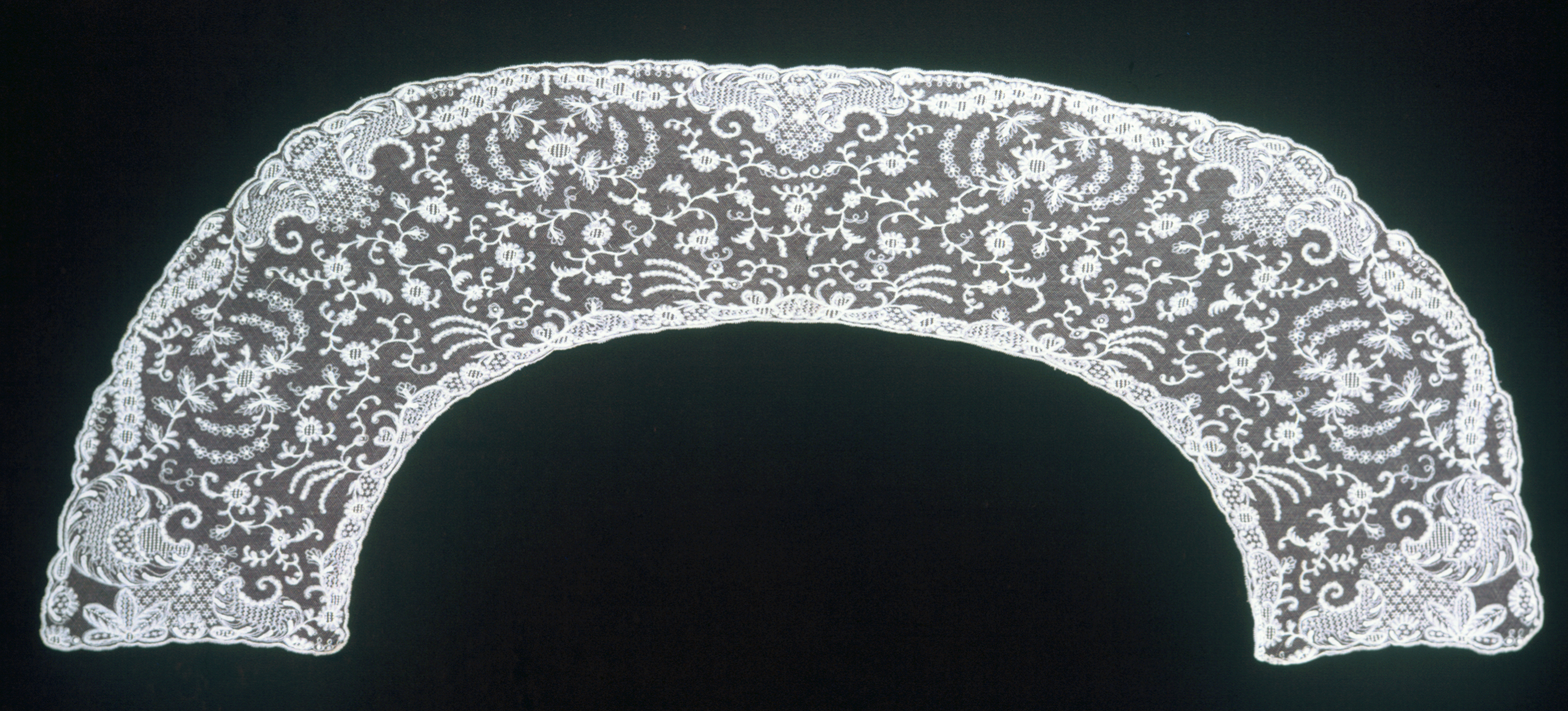 This is a Collar. It is dated 19th century and we acquired it in 1938. Its medium is linen and its technique is needlework on net. It is a part of the Textiles department.