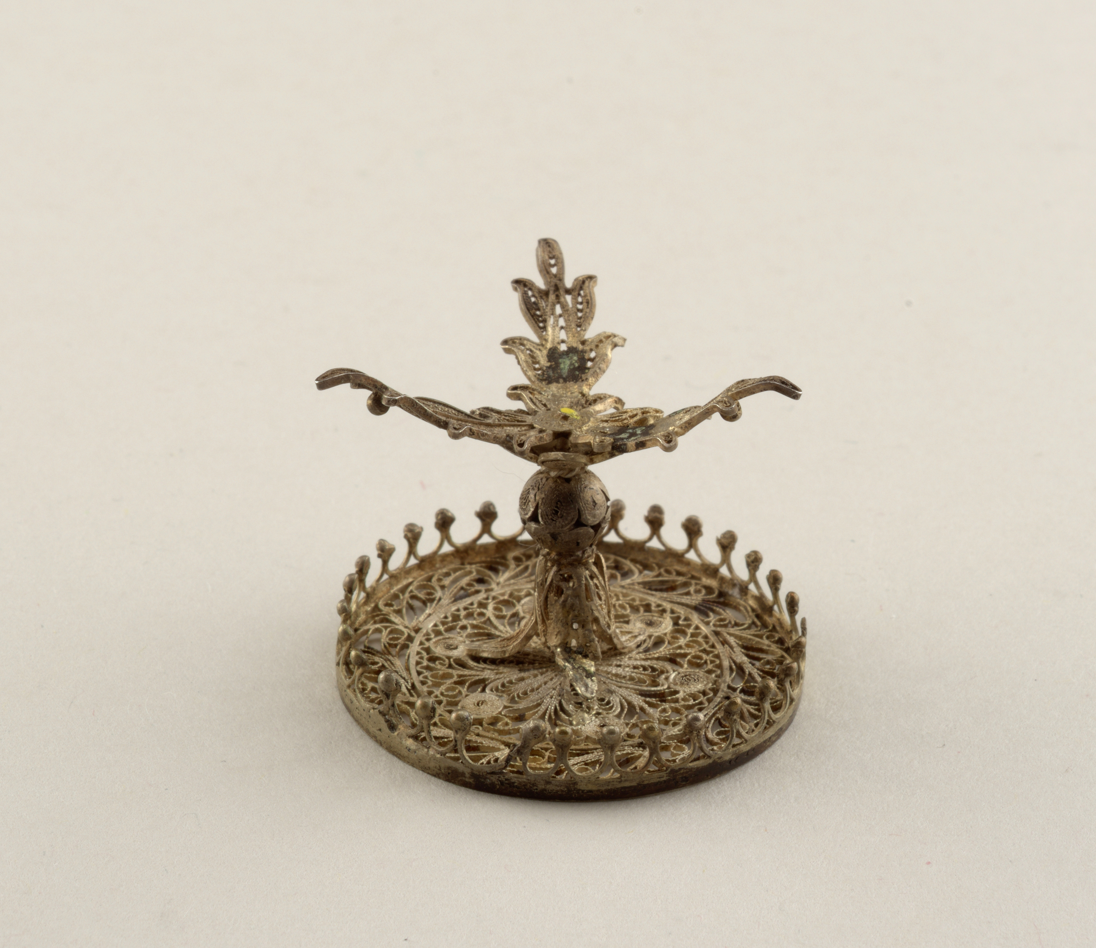 This is a Miniature. It is dated mid-19th century and we acquired it in 1938. Its medium is silver filigree. It is a part of the Product Design and Decorative Arts department.
