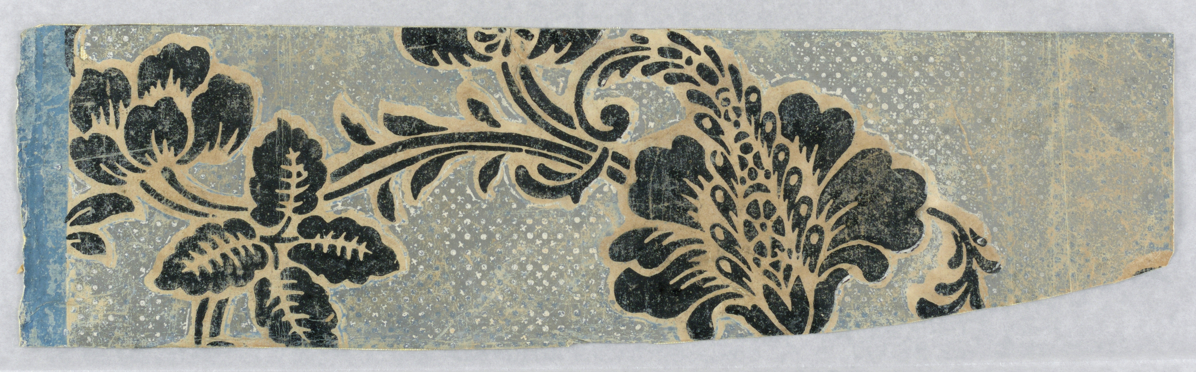 This is a Sidewall - fragment. It is dated ca. 1768 and we acquired it in 1938. Its medium is block printed on handmade paper. It is a part of the Wallcoverings department.