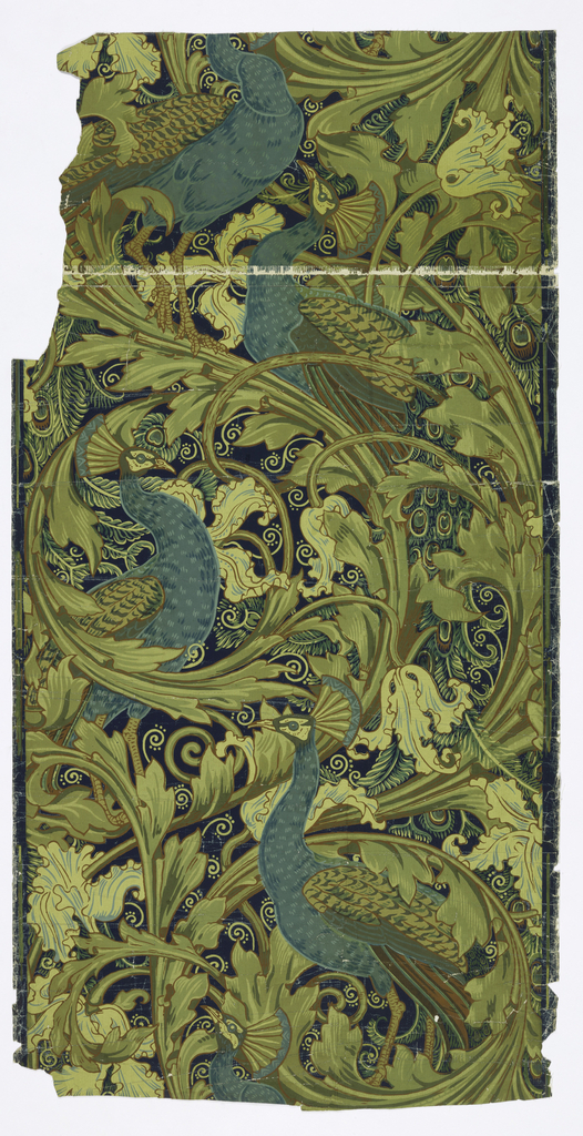 Sidewall, The Peacock Garden; Designed by Walter Crane ((English, 1845–1915)); Manufactured by Jeffrey & Company (United Kingdom); England; block-printed paper; H x W: 152 x 111 cm (59 13/16 x 43 11/16 in.); Gift of Grace Lincoln Temple; 1938-62-74-a/d