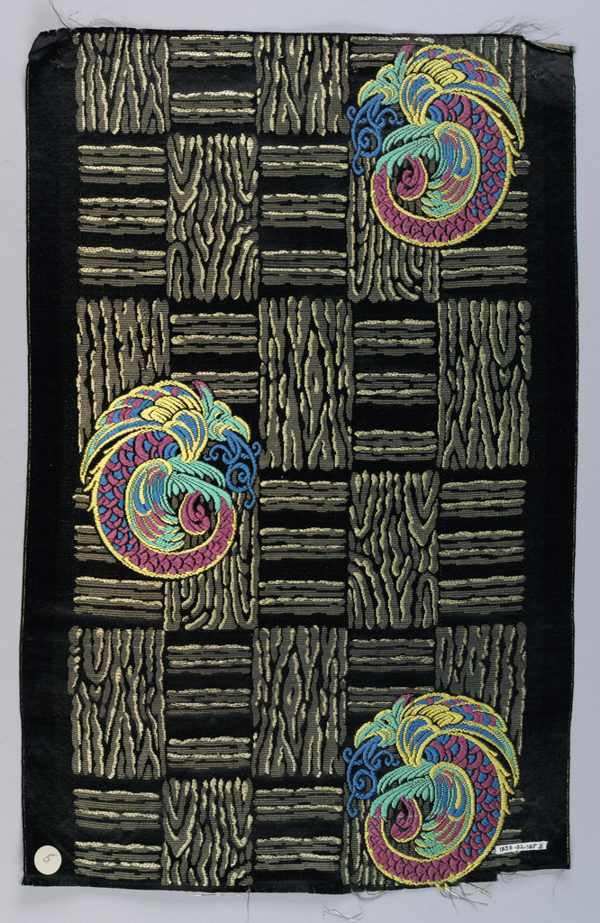 This is a Ribbons. It is dated ca. 1919 and we acquired it in 1938. Its medium is silk, metallic thread and its technique is compound satin weave with supplementary weft. It is a part of the Textiles department.