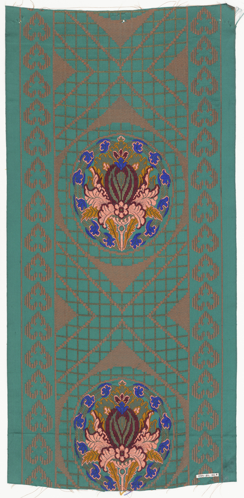 This is a Ribbons. It is dated ca. 1919 and we acquired it in 1938. Its medium is silk, metallic thread and its technique is compound satin weave with supplementary weft. It is a part of the Textiles department.