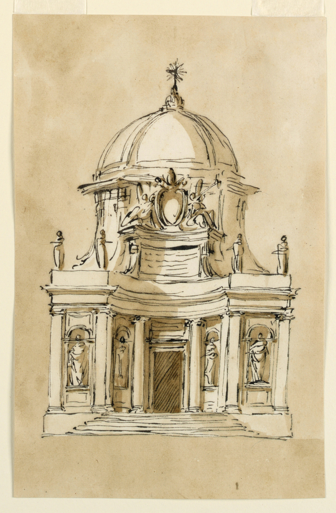 Drawing, Elevation of a church; Designed by Giuseppe Barberi (Italian, 1746–1809); Italy; pen and brown ink, brush and brown wash on off-white laid paper; 25.4 x 16.4 cm (10 x 6 7/16 in.); Museum purchase through gift of various donors and from Eleanor G. Hewitt Fund; 1938-88-1210