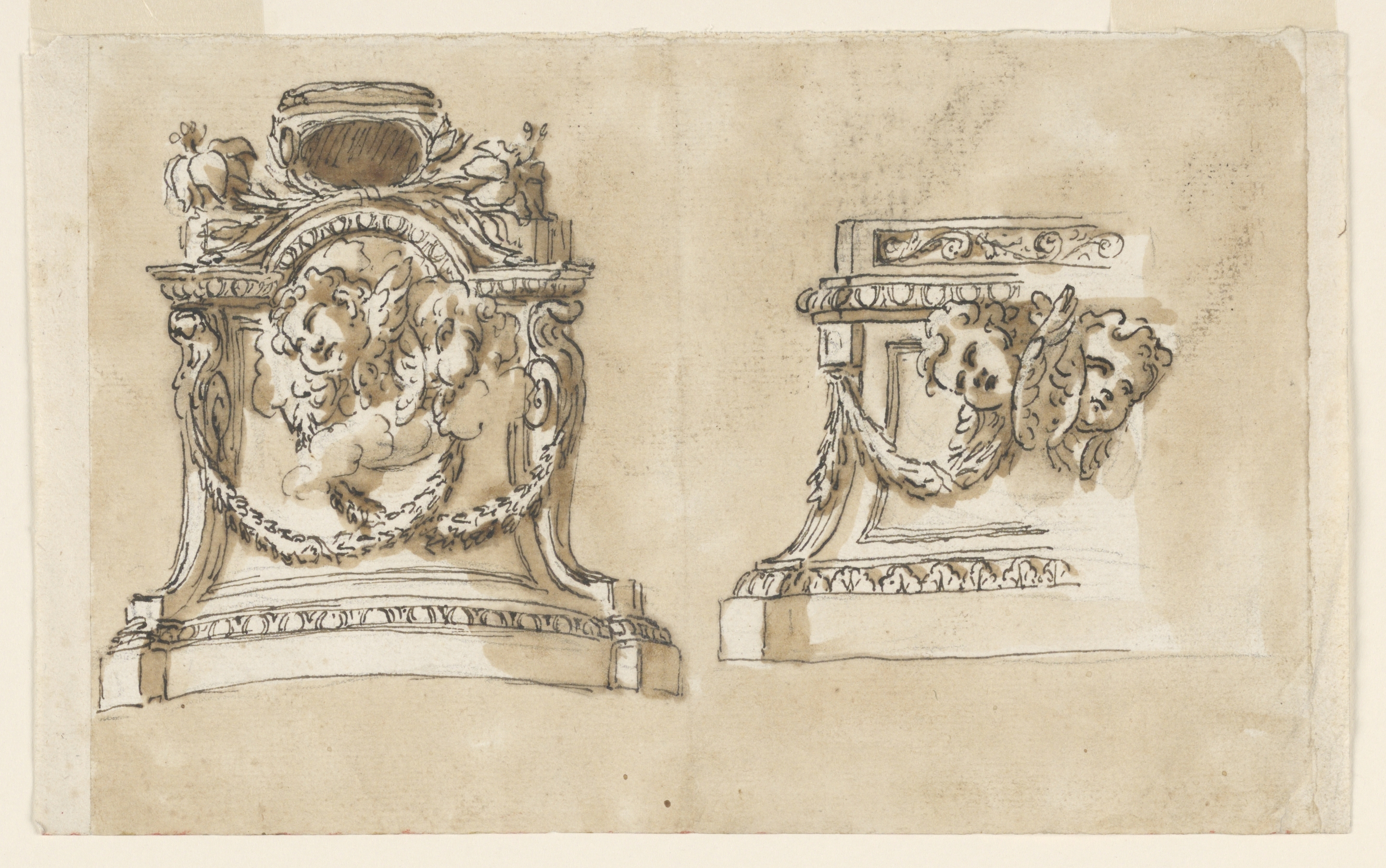 Drawing, Pedestal; Designed by Giuseppe Barberi (Italian, 1746–1809); Italy; pen and brown ink, brush and brown wash, red ink at bottom edge on off-white laid paper, lined; Image: 13 x 19.9 cm (5 1/8 x 7 13/16 in.); Museum purchase through gift of various donors and from Eleanor G. Hewitt Fund; 1938-88-1814