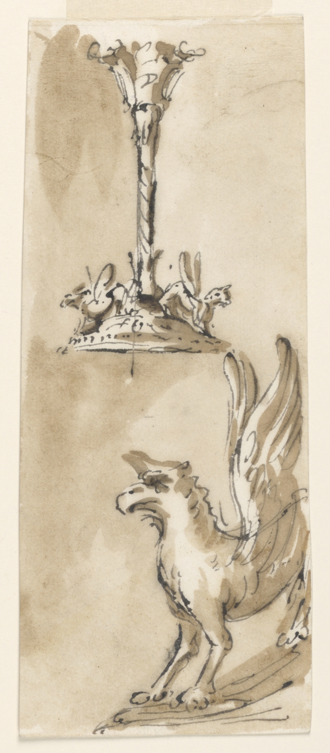 Drawing, Candlestick; Designed by Giuseppe Barberi (Italian, 1746–1809); Italy; pen and brown ink, brush and brown wash on off-white laid paper, lined; Image: 19.4 x 8 cm (7 5/8 x 3 1/8 in.); Museum purchase through gift of various donors and from Eleanor G. Hewitt Fund; 1938-88-2035