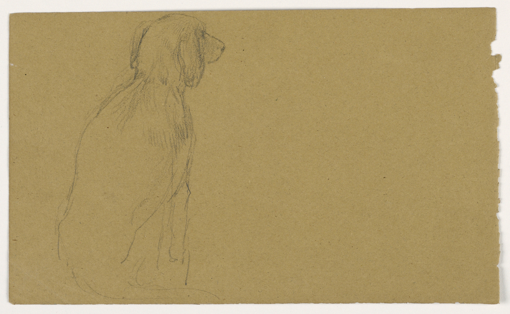 Drawing, Sketch of a Dog, Milo; Daniel Huntington (American, 1816–1906); USA; graphite on brown paper; 11.9 × 19.5 cm (4 11/16 × 7 11/16 in.); Bequest of Erskine Hewitt; 1942-50-901