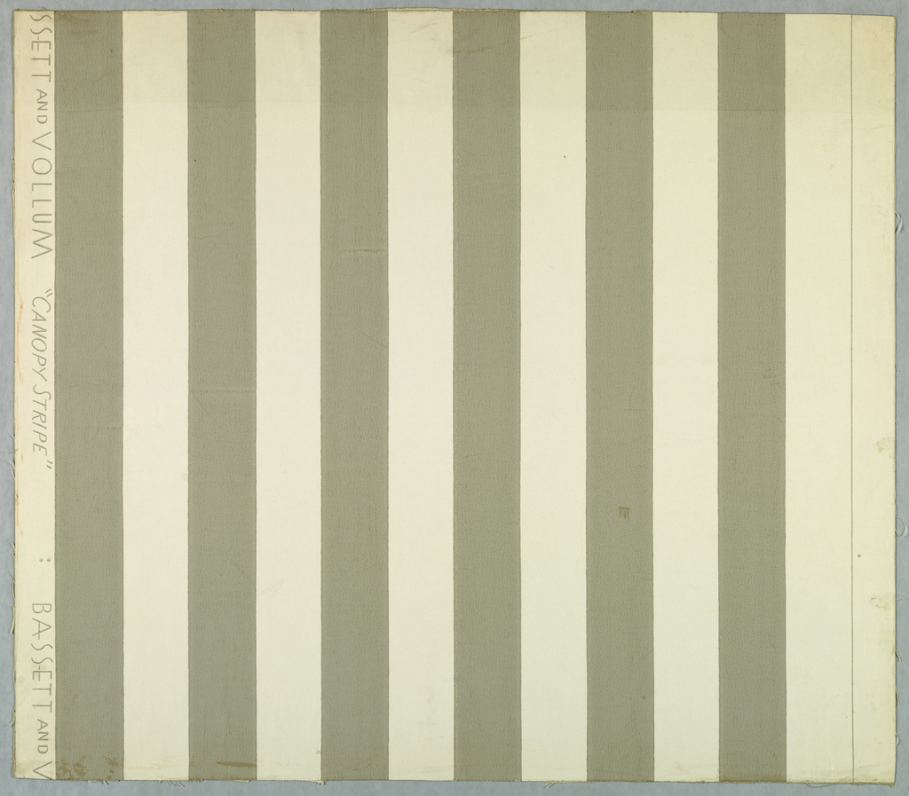 Sidewall, Canopy Stripe; Manufactured by Bassett & Vollum, Inc. (United States); USA; machine-printed; 49 x 55.5 cm (19 5/16 x 21 7/8 in.); Gift of Estelle Campbell; 1942-54-20