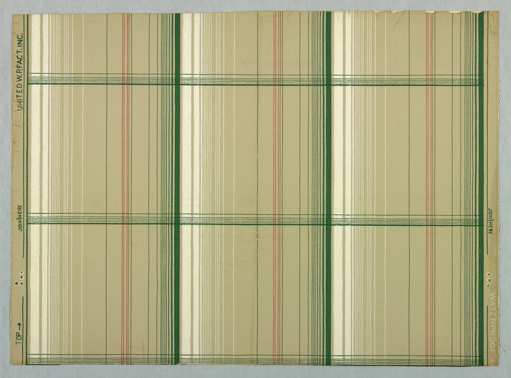 This is a Sidewall. It was manufactured by Richard E. Thibaut, Inc. and United Wallpaper Factories, Inc.. It is dated 1940 and we acquired it in 1942. Its medium is machine-printed. It is a part of the Wallcoverings department.