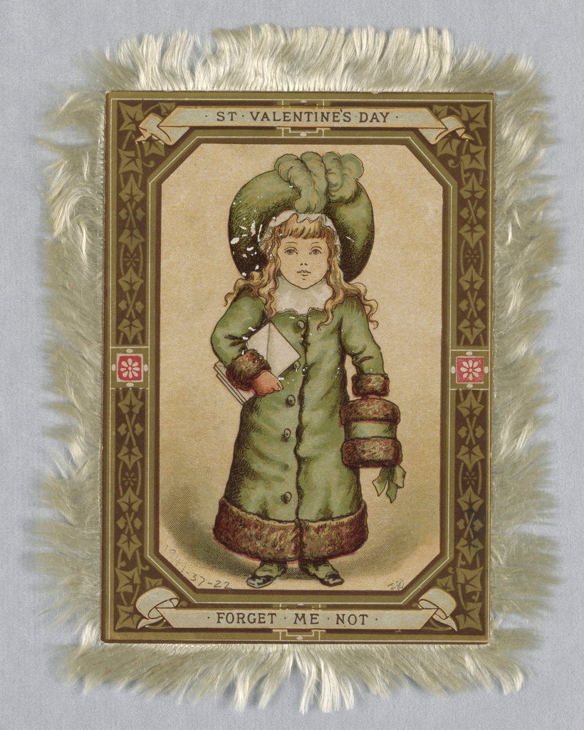 <ref name=CH>{{cite web |url=https://www-6.collection.cooperhewitt.org/objects/18382169/ |title=Greeting Card, St. Valentine's Day, Forget Me Not |author=Cooper Hewitt, Smithsonian Design Museum |accessdate=19 December 2025 |publisher=Smithsonian Institution}}</ref>