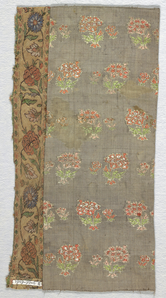 This is a Fragments. We acquired it in 1949. Its medium is silk. It is a part of the Textiles department.