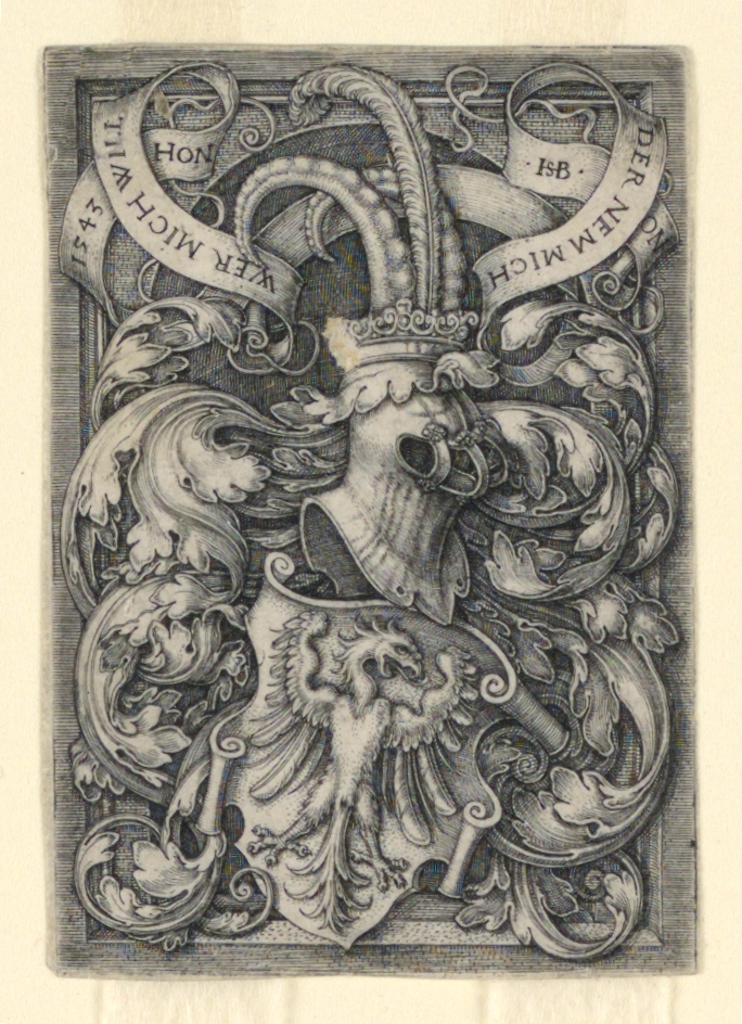 Print, Coat of Arms with an Eagle; Print Maker: Hans Sebald Beham (German, 1500–1550); engraving on off-white laid paper; Gift of Leo Wallerstein; 1950-131-43