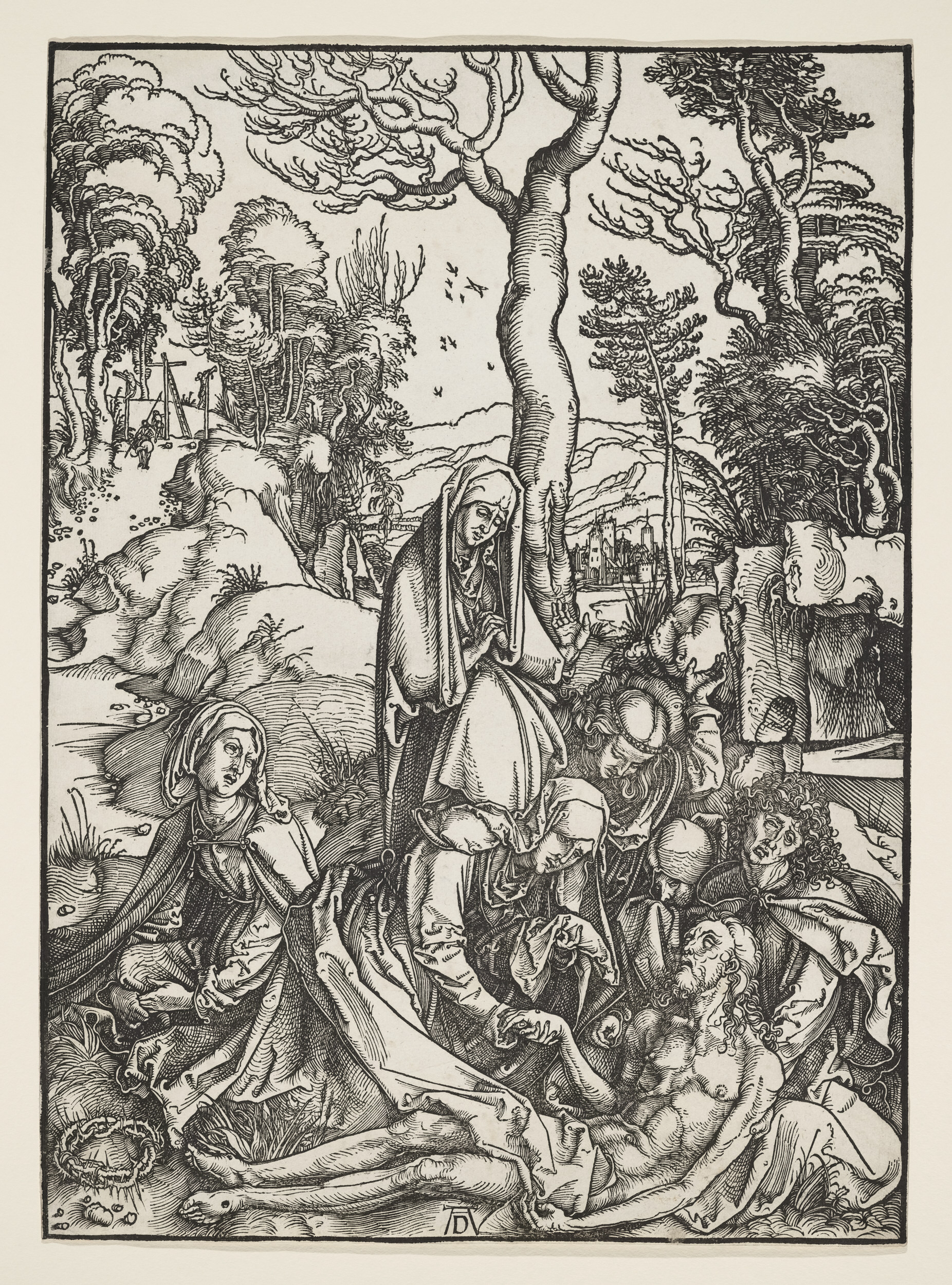 Print, The Lamentation; Albrecht Dürer (German, 1471–1528); Germany; woodcut on laid paper; 39.6 x 28.4 cm (15 9/16 x 11 3/16 in.); 1950-30-10
