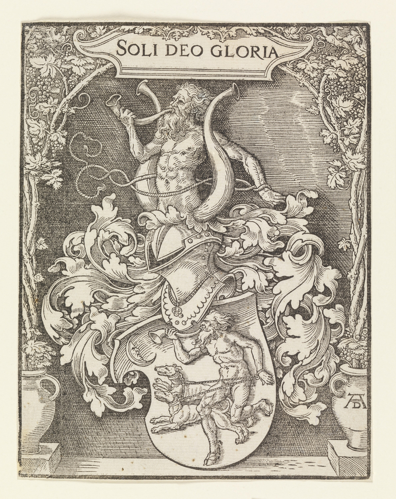 Print, The Coat of Arms of Tschertie; Albrecht Dürer (German, 1471–1528); Germany; woodcut and black ink on paper; H x W: 18.6 x 14.4 cm (7 5/16 x 5 11/16 in.); Gift of Leo Wallerstein; 1950-5-26