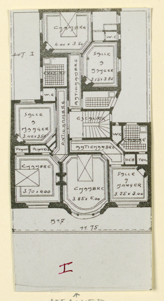 Photograph, Photograph of a Floor Plan of an Apartment Building Designed by Hector Guimard (No. 9); Architect: Hector Guimard ((French, 1867–1942)); France; photographic print on sensitized paper; 12.8 x 6.2 cm (5 1/16 x 2 7/16 in.); Gift of Mme. Hector Guimard; 1951-160-1-9