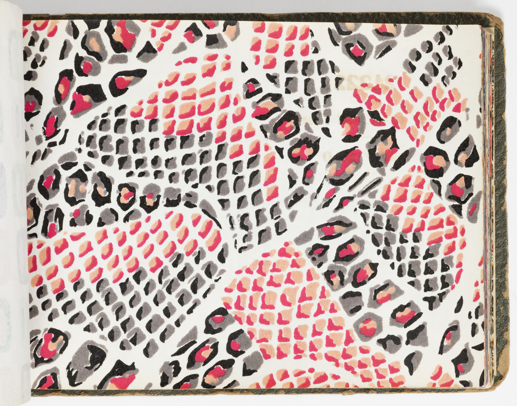 Sample Book, Dessins Nouveauté; Manufactured by Gillet et Fils; France; block-printed and dyed; H x W: 16.5 x 24.5 cm (6 1/2 x 9 5/8 in.); Gift of Martin Fabrics Corporation; 1951-163-1-1/156