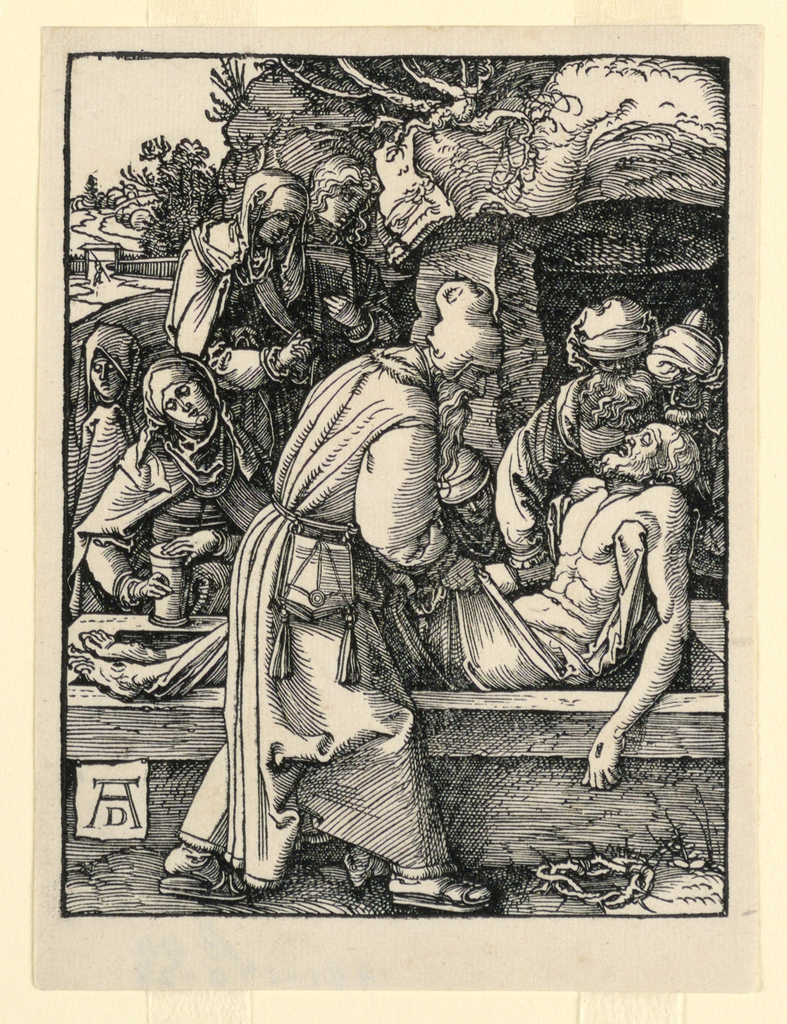 Print, The Entombment, from The Little Passion Series; Designed by Albrecht Dürer (German, 1471–1528); Germany; woodcut on off-white laid paper; 14.3 × 10.8 cm (5 5/8 × 4 1/4 in.); Gift of Leo Wallerstein; 1951-170-28