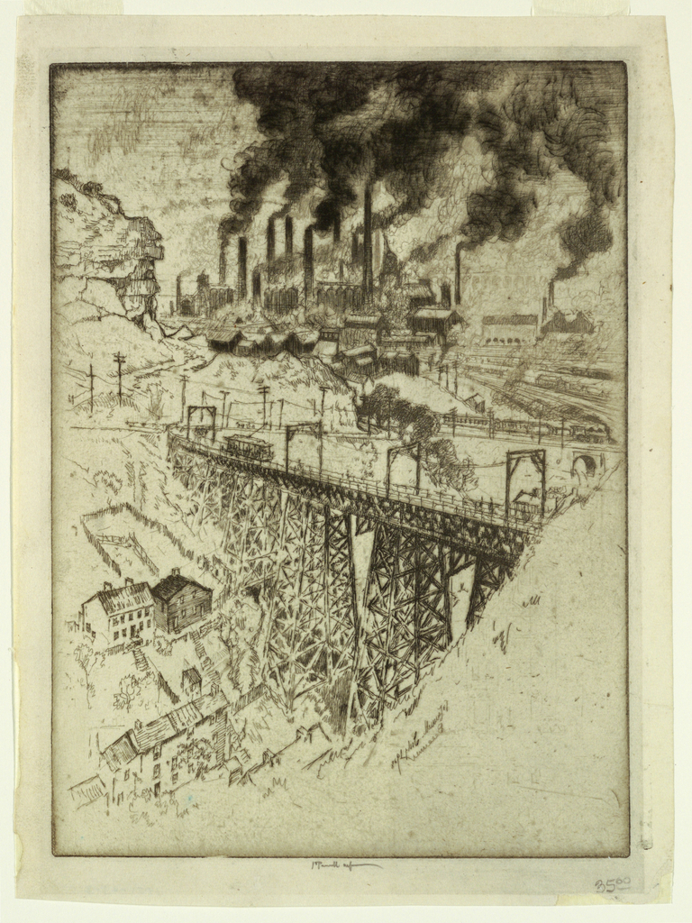 Printed in plate, lower right: [reverse] Jo Pennell July 1908 / Bessemer; signed in graphite, lower center margin: Jo Pennell imp
