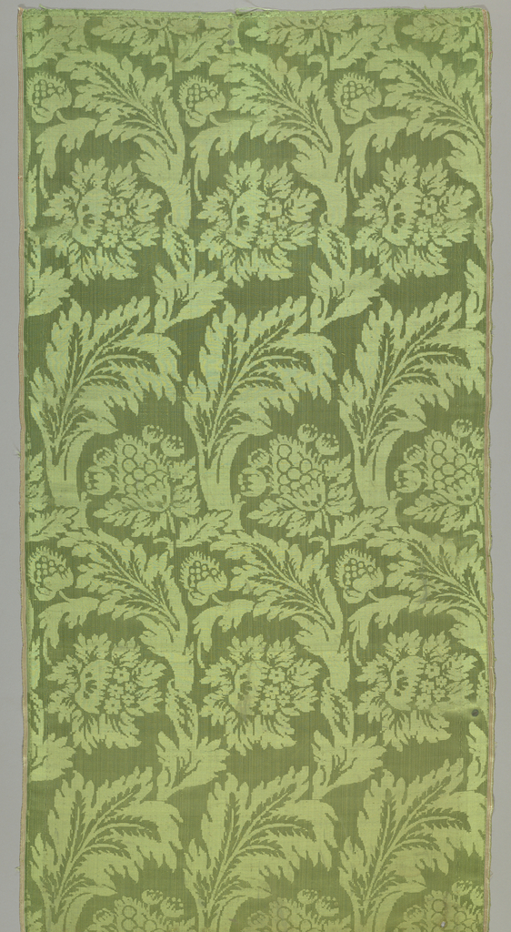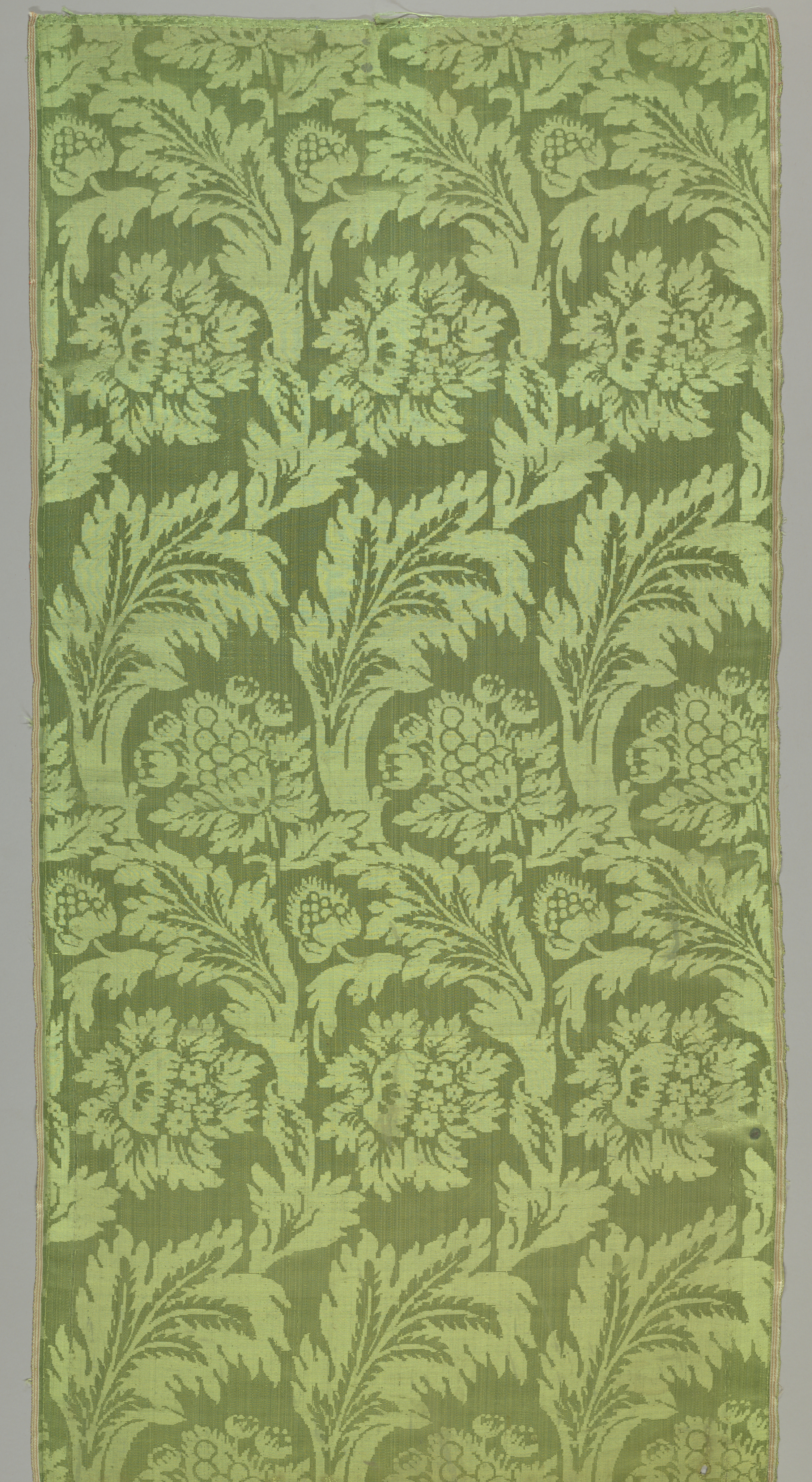 This is a Fragment. It is dated late 17th century and we acquired it in 1952. Its medium is silk and its technique is 5-harness satin damask. It is a part of the Textiles department.