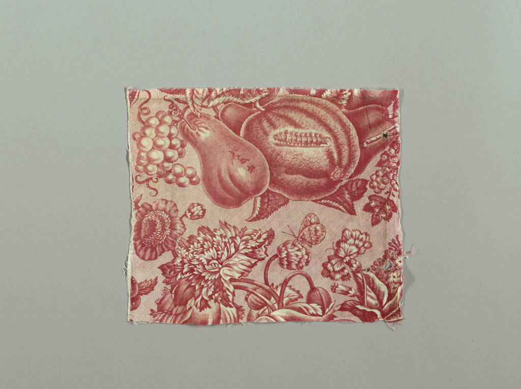 This is a Textile. It is dated late 18th–early 19th century and we acquired it in 1952. Its medium is cotton and its technique is printed by engraved copper plate on plain weave. It is a part of the Textiles department.