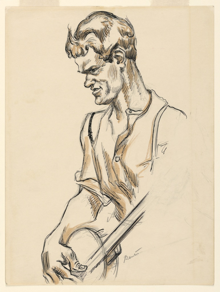 This is a Drawing. It was created by Thomas Hart Benton. It is dated 1934 and we acquired it in 1953. Its medium is pen and black ink, brush and brown wash over graphite on off-white wove paper. It is a part of the Drawings, Prints, and Graphic Design department.