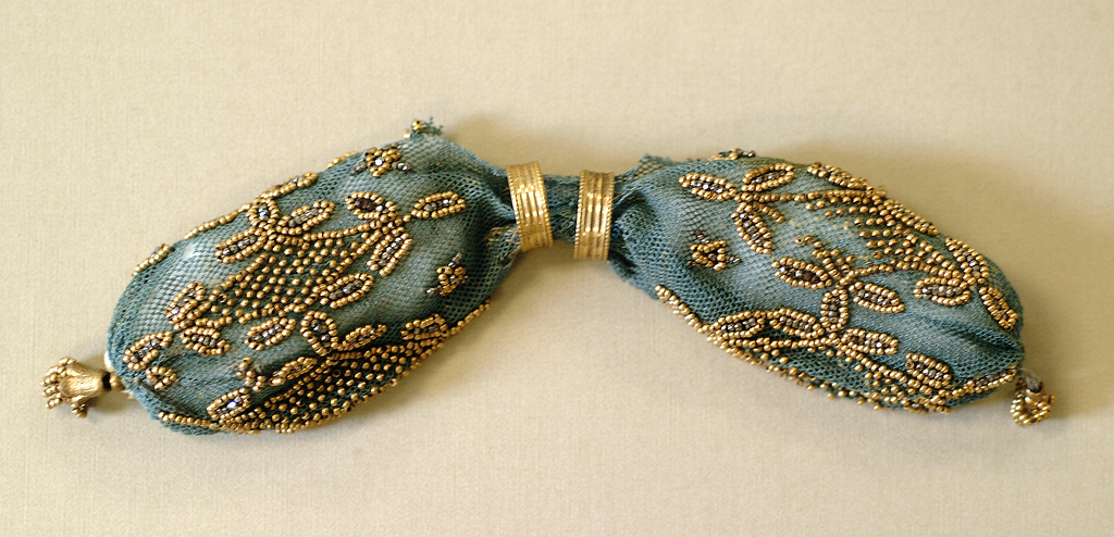 This is a Miser's purse. It is dated early 19th century and we acquired it in 1953. Its medium is silk, metal and its technique is crochet. It is a part of the Textiles department.