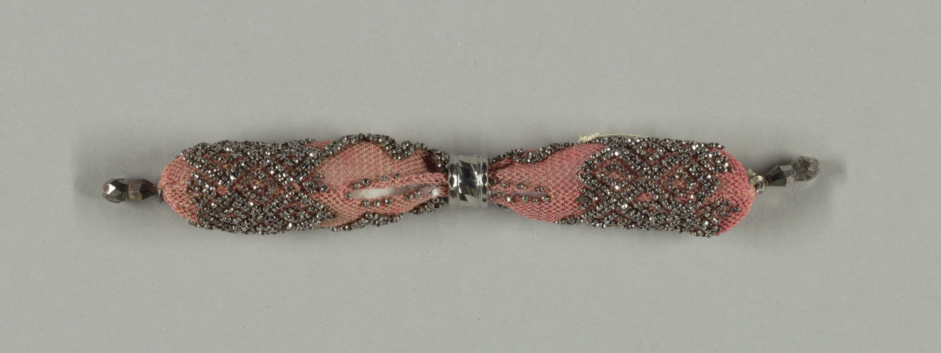 This is a Miser's purse. It is dated early 19th century and we acquired it in 1953. Its medium is silk, metal and its technique is crocheted. It is a part of the Textiles department.