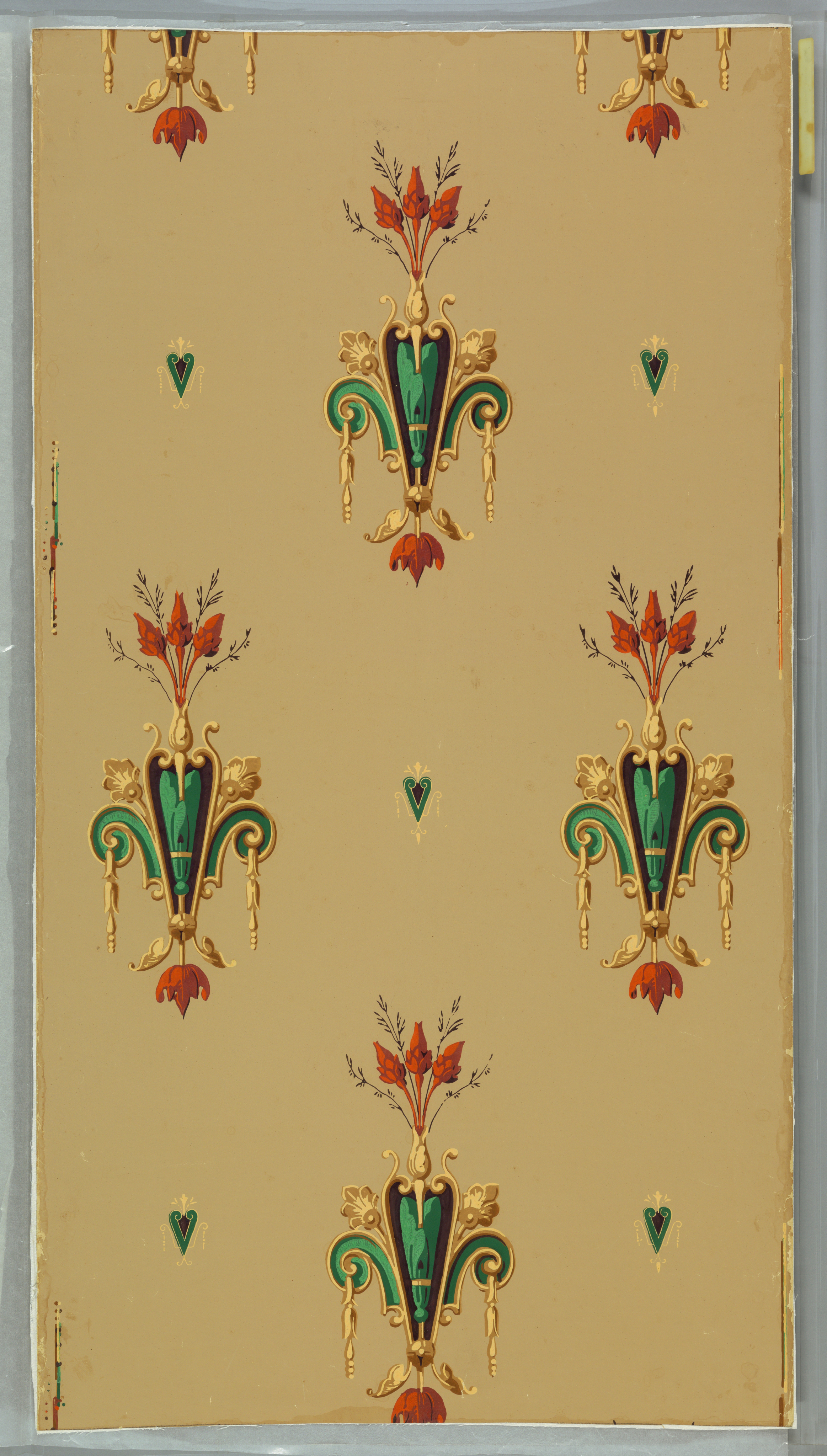 This is a Sidewall. It is dated 1850–60 and we acquired it in 1953. Its medium is block-printed paper. It is a part of the Wallcoverings department.