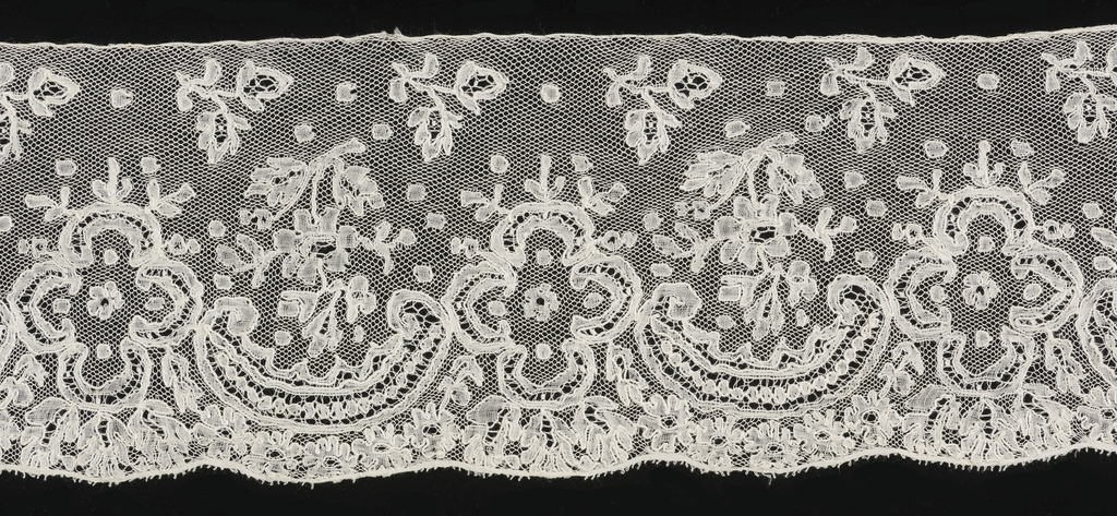 This is a Border. It is dated 18th century and we acquired it in 1953. Its medium is linen and its technique is bobbin lace, mechlin style. It is a part of the Textiles department.