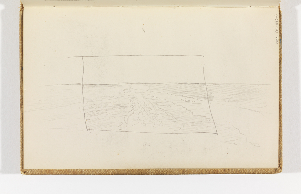 Sketchbook Folio, Cornish Sea Coast and Protruding Cliffs (Recto); Study of Rippling Water (Verso); William Trost Richards (American, 1833–1905); USA; graphite on cream wove paper; Recto: 10.5 x 17.6 cm (4 1/8 x 6 15/16 in.) Verso: 6.7 x 11 cm (2 5/8 x 4 5/16 in.) Sheet: 13.7 x 21.5 cm (5 3/8 x 8 7/16 in.); Gift of the National Academy of Design from the Mrs. William T. Brewster Bequest; 1953-179-88-6