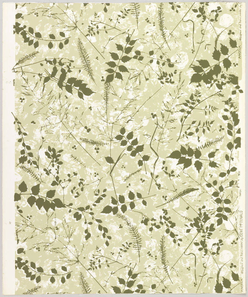 Sidewall, Angela; Designed by Gene McDonald; USA; screen-printed on paper; 91.5 x 77 cm (36 x 30 5/16 in.); Gift of The Wallpaper Magazine; 1953-198-3-a/c