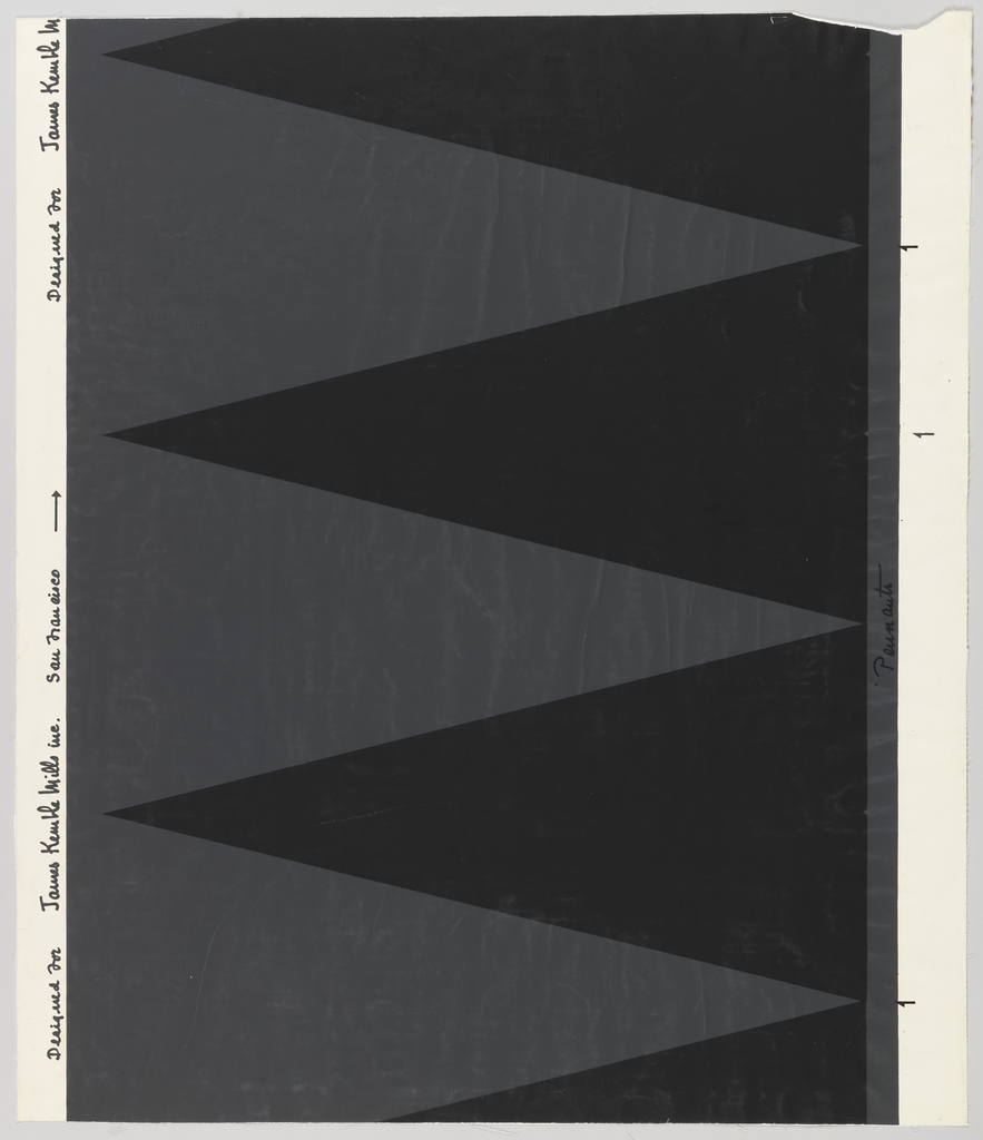Printed in left selvedge: Designed for James Kemble Mills San Francisco; written or printed on right side: Pennants.