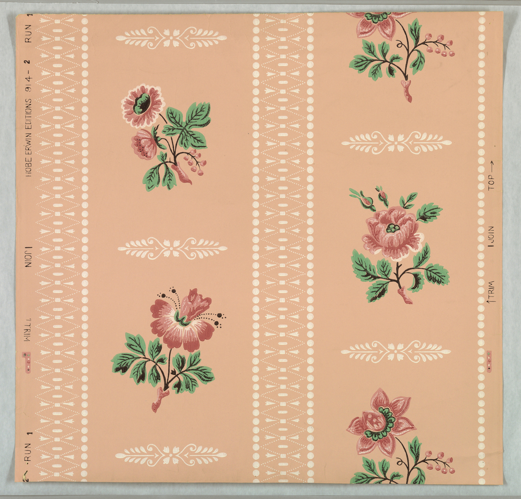 This is a Sidewall. It was manufactured by Hobe Erwin Editions. It is dated 1952–53 and we acquired it in 1954. Its medium is machine-printed. It is a part of the Wallcoverings department.