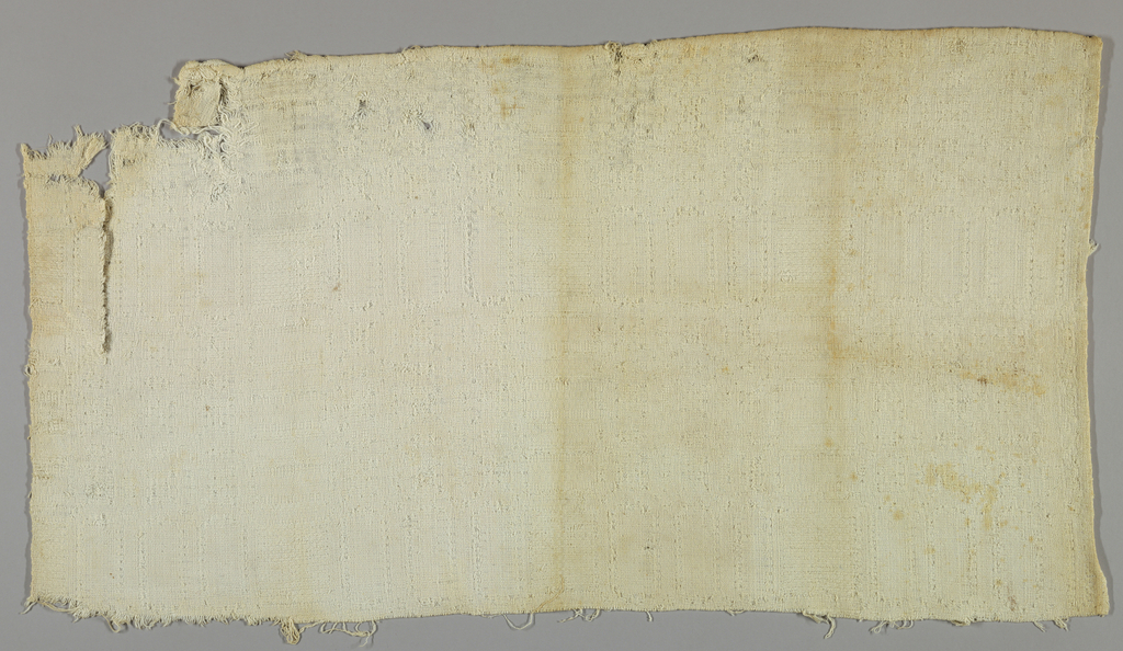 This is a Textile. We acquired it in 1953. Its medium is hand woven, white linen. It is a part of the Textiles department.