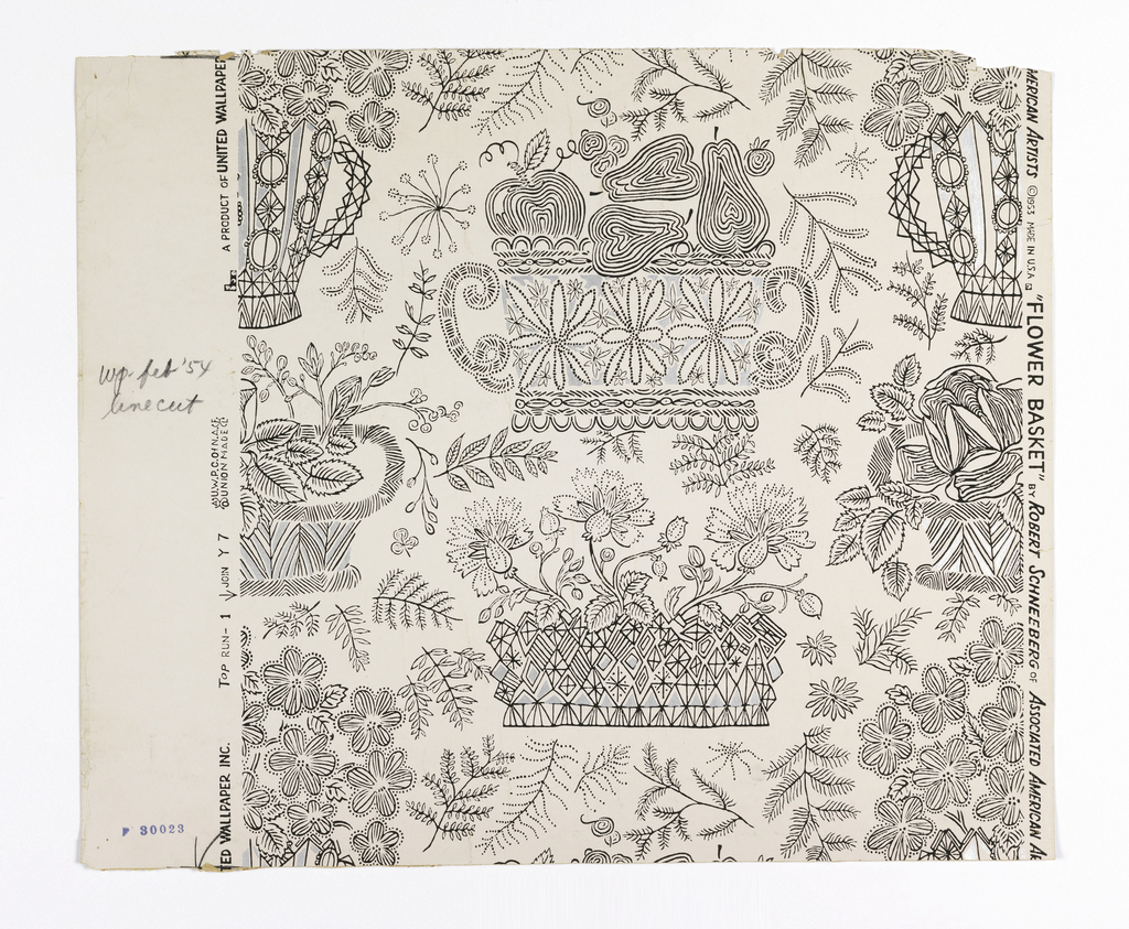 Sidewall, Flower Basket; Designed by Associated American Artists (United States), Robert Schneeberg (American, 1922 - 2008); Manufactured by United Wallpaper, Inc.; USA; machine-printed; 54 x 65 cm (21 1/4 x 25 9/16 in.); Gift of B.H. Hellman; 1954-21-7