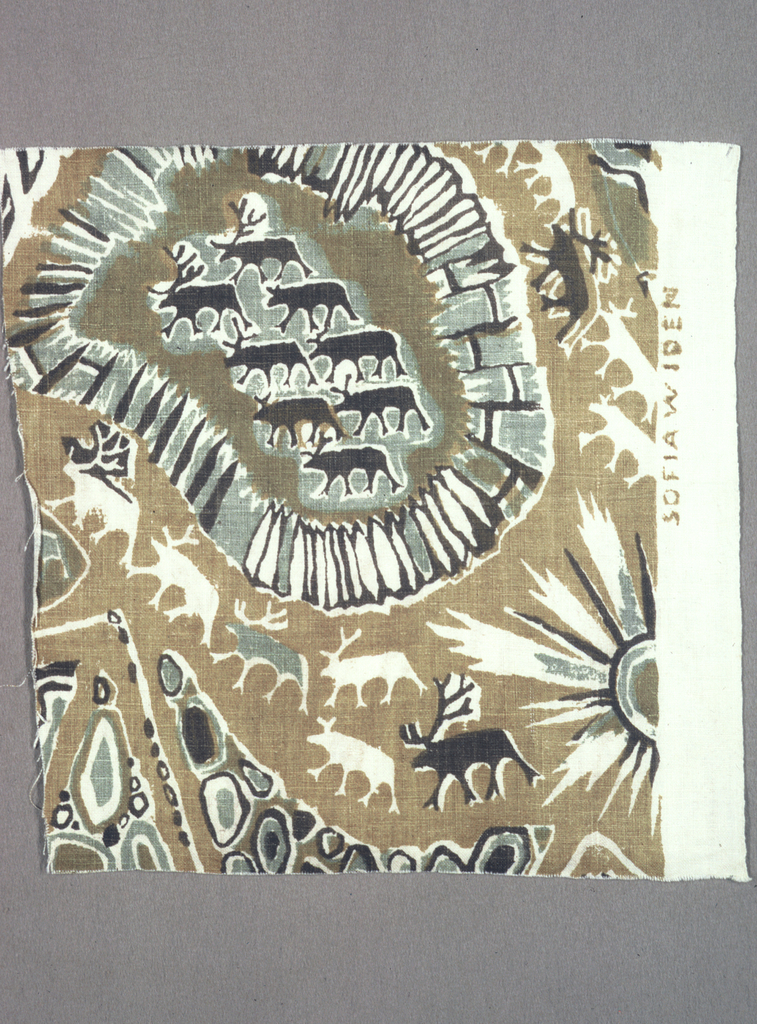 This is a Textile. It is dated ca. 1950 and we acquired it in 1954. Its medium is linen and its technique is printed on plain weave. It is a part of the Textiles department.