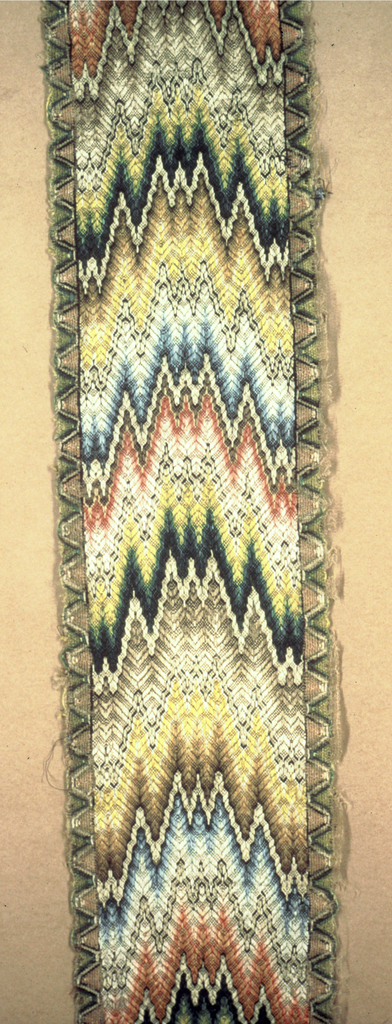 This is a Textile. We acquired it in 1954. Its technique is counted stitch embroidery. It is a part of the Textiles department.