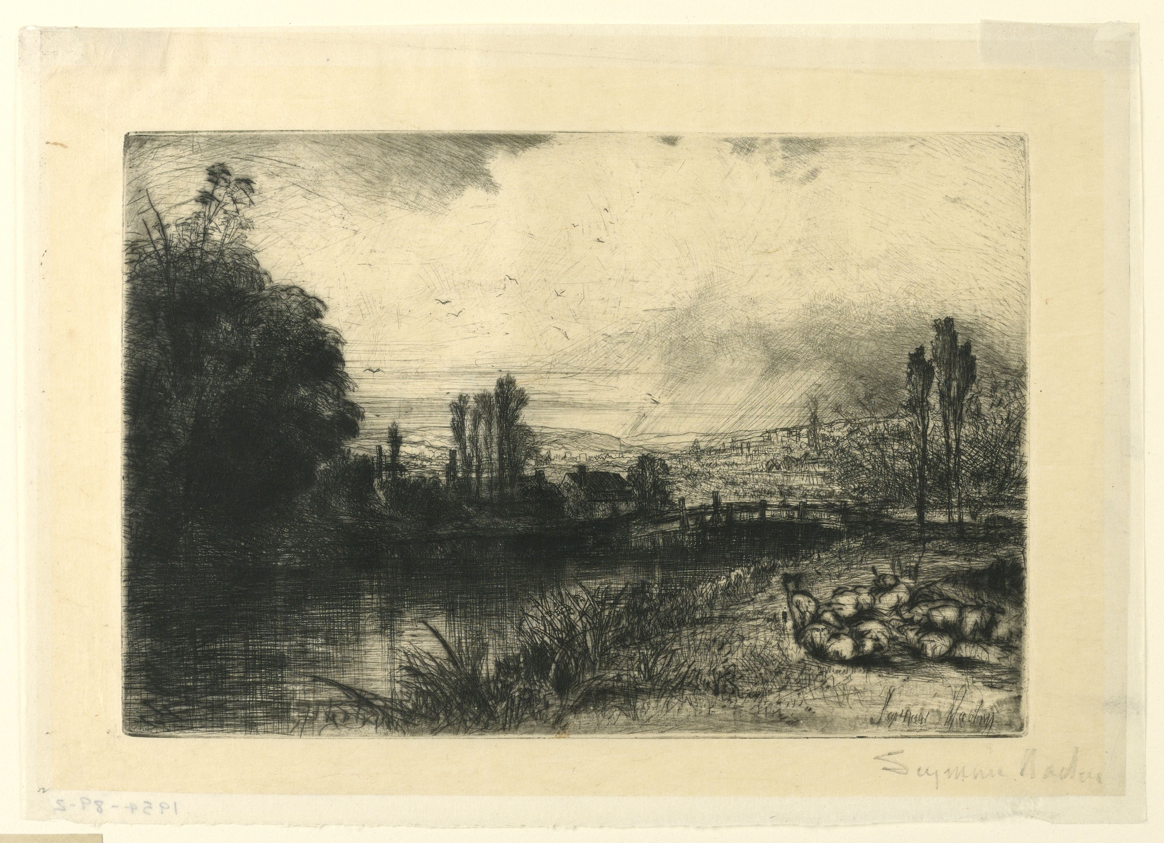 This is a Print. It was print maker: Francis Seymour Haden. It is dated 1859 and we acquired it in 1954. Its medium is etching. It is a part of the Drawings, Prints, and Graphic Design department.