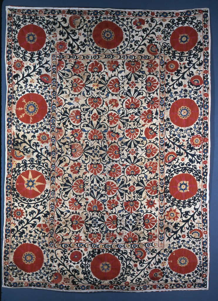 Bed Cover (suzani); silk embroidery on cotton foundation; H x W: 248.9 x 182.9 cm (98 x 72 in.); Gift of Provident Securities Company from the Estate of Mr. and Mrs. William H. Crocker; 1955-133-18
