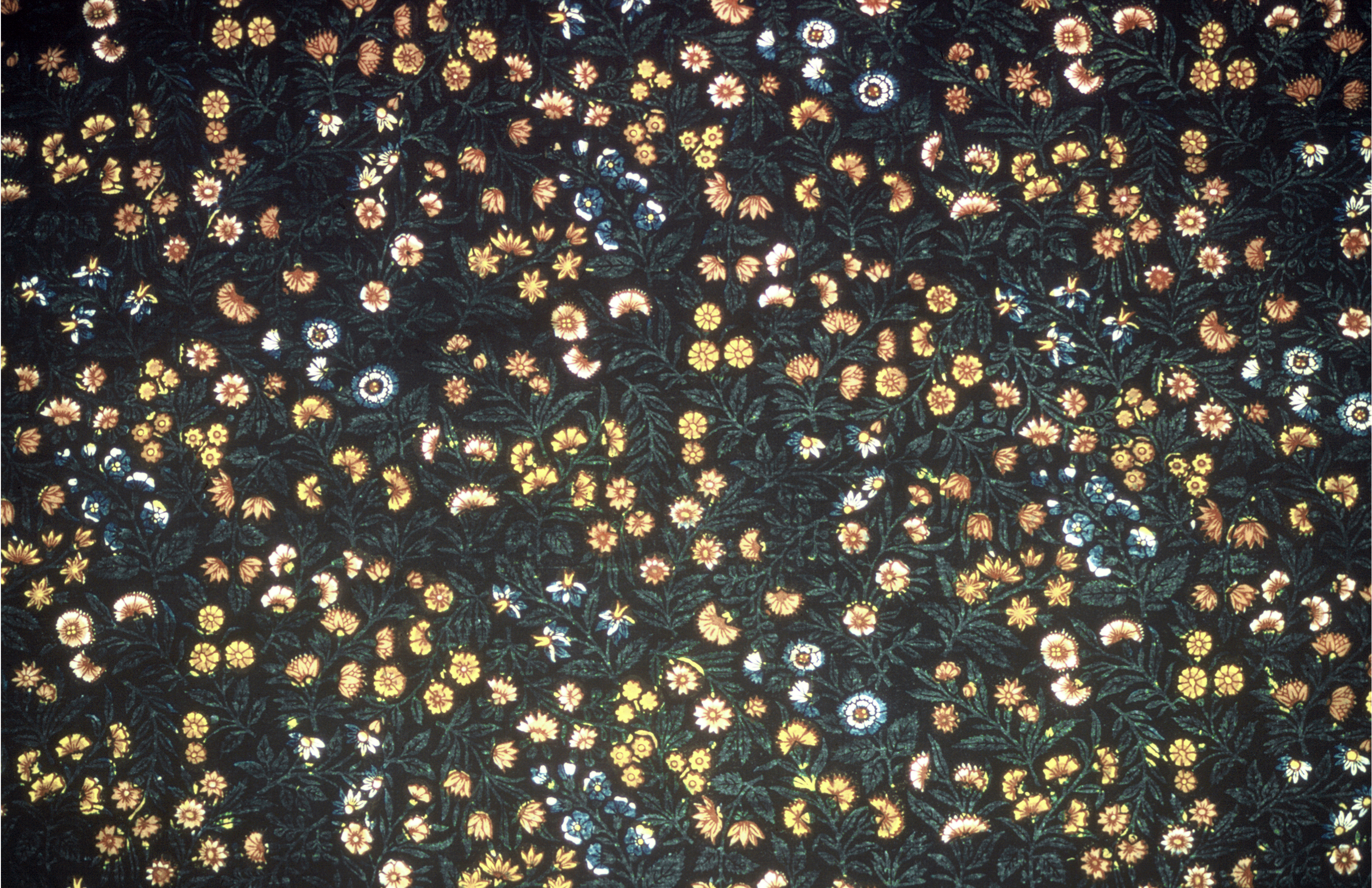 This is a Woman's cape. It is dated early 19th century and we acquired it in 1955. Its medium is cotton and its technique is roller printed on plain weave. It is a part of the Textiles department.