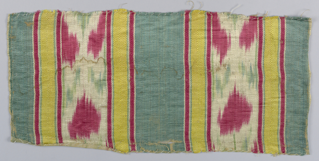This is a Textile. It is dated early 19th century and we acquired it in 1955. Its medium is silk, linen and its technique is warp printed. It is a part of the Textiles department.