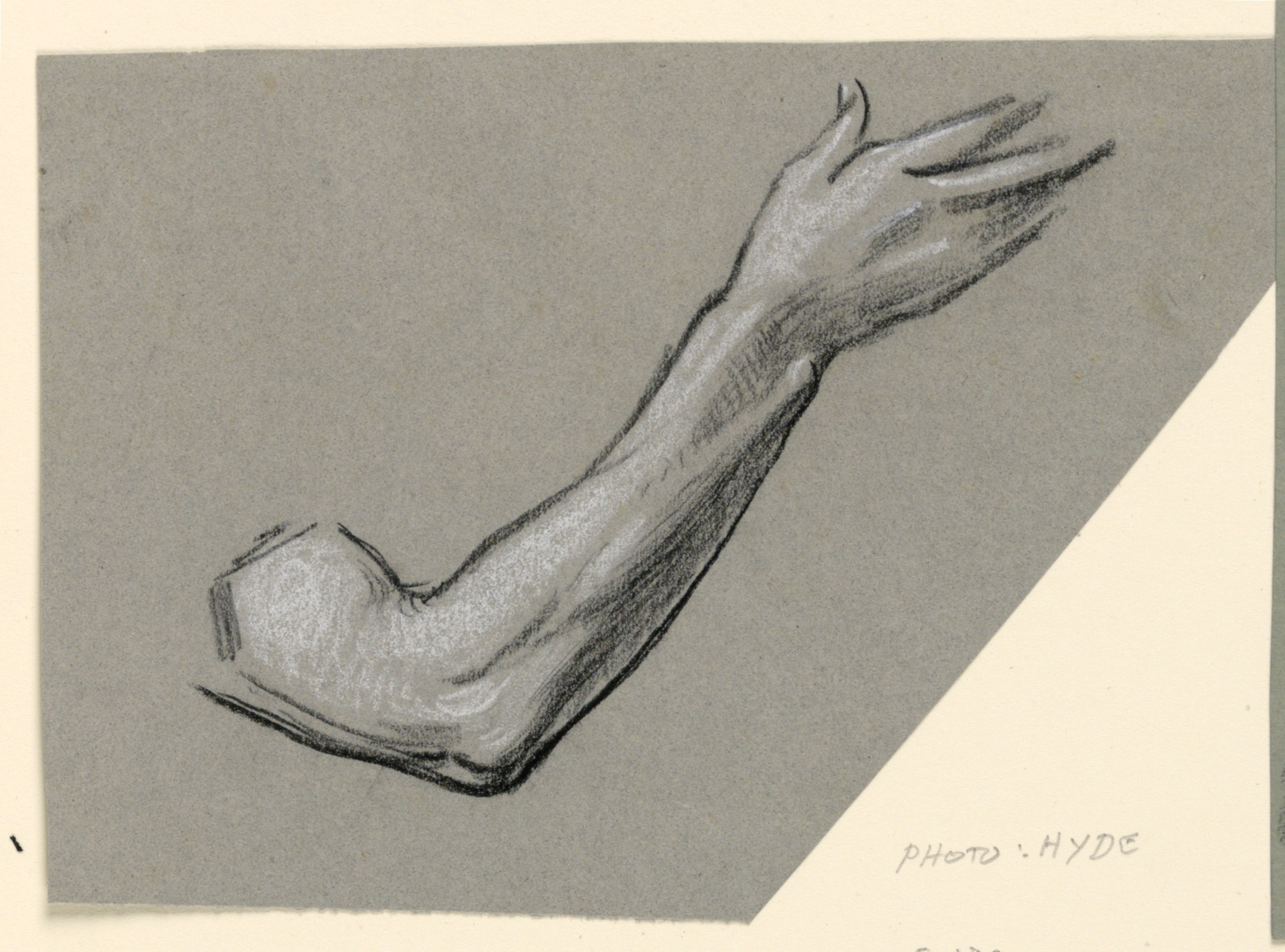 Drawing, Study of arm; Elihu Vedder (American, 1836 – 1923); USA; pastel crayon on gray paper; 18.9 x 19 cm (7 7/16 x 7 1/2 in.) ; Gift of the American Academy of Arts and Letters; 1955-38-13-a