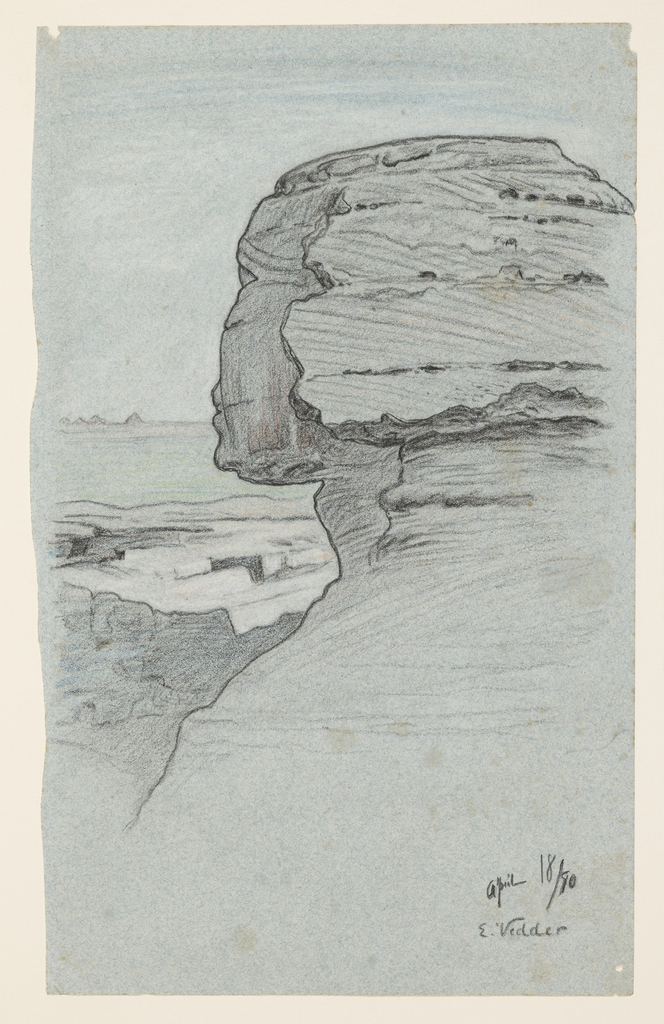 This is a Drawing. It was created by Elihu Vedder. It is dated April 18, 1890 and we acquired it in 1955. Its medium is pastel crayons on blue-gray wove paper. It is a part of the Drawings, Prints, and Graphic Design department.