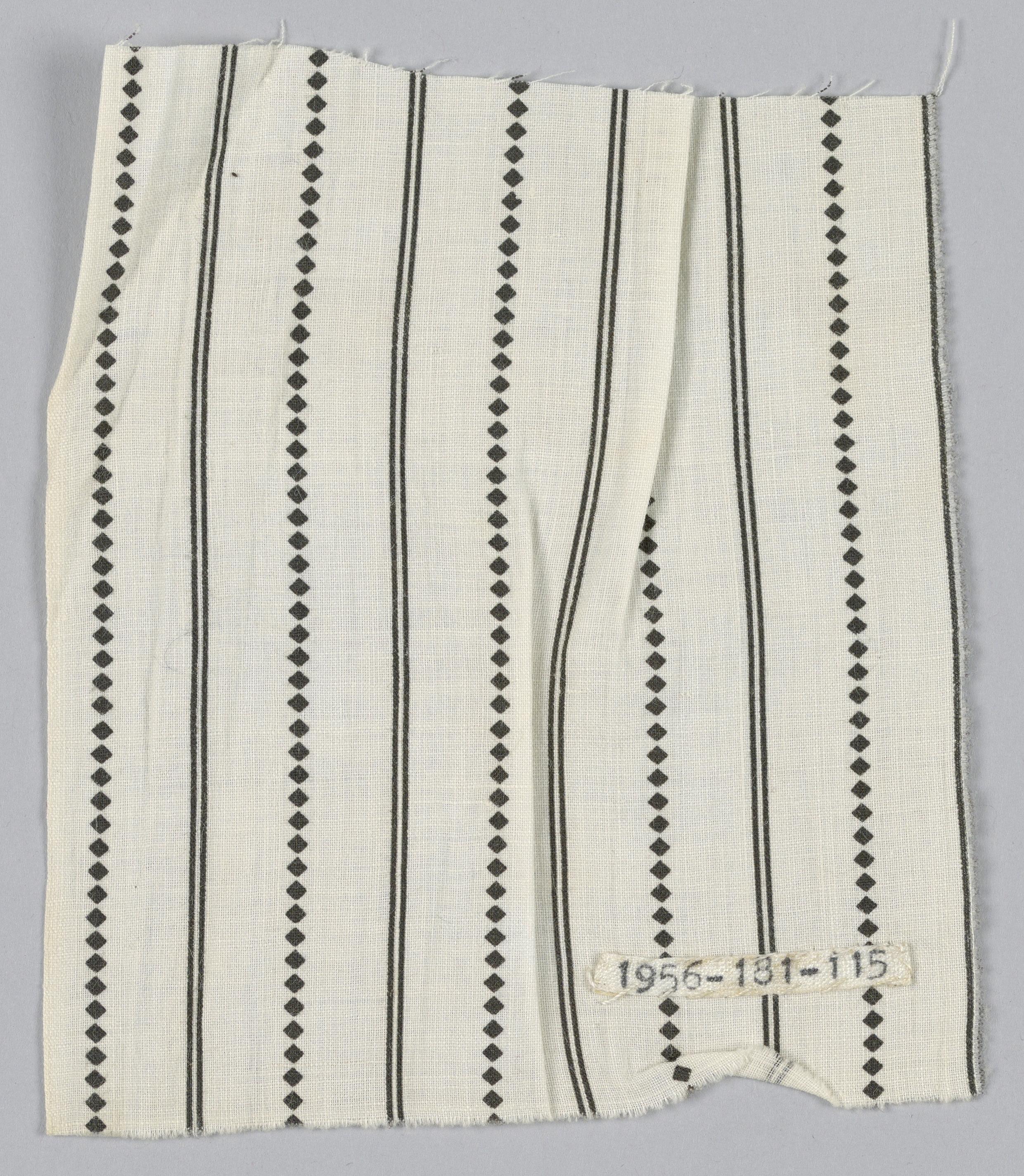 This is a Fragment. It is dated 19th century and we acquired it in 1956. Its technique is printed. It is a part of the Textiles department.