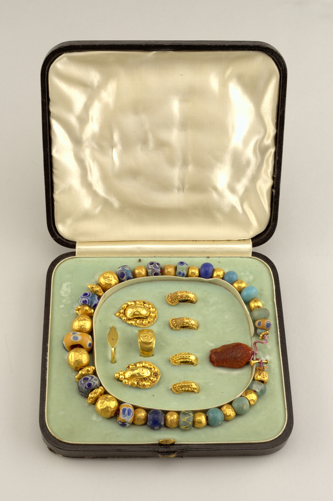 This is a Earring. We acquired it in 1956. Its medium is gold. It is a part of the Product Design and Decorative Arts department.