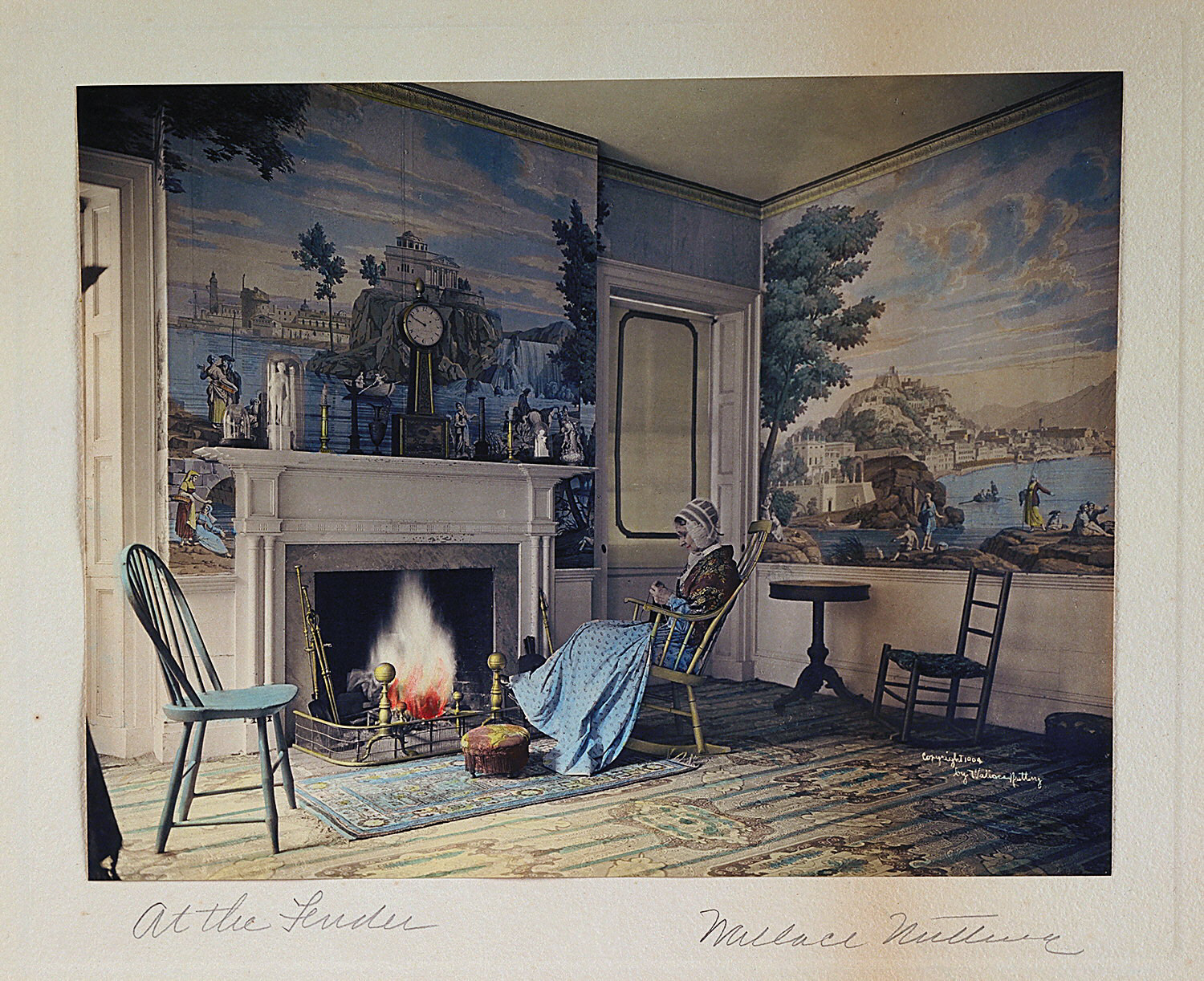Inscribed on the mount in graphite at bottom left: "At the Fender;" at bottom right: "Wallace Nutting." Inscribed in photographic process, at lower right: "Copyright 1904 by Wallace Nutting."