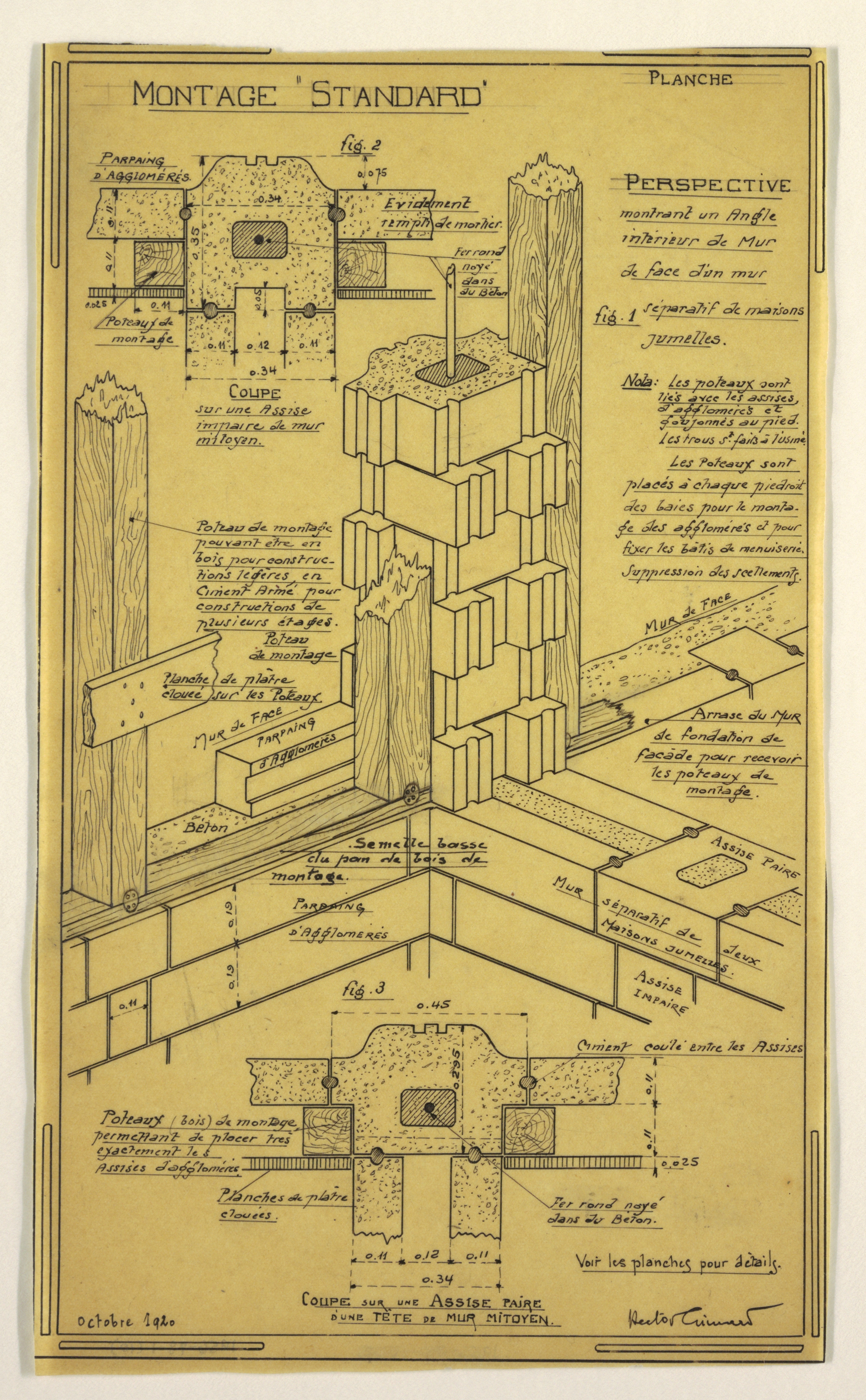 Drawing, Plate Illustrating Standard Assembly (“Montage ‘Standard’"); Architect: Hector Guimard ((French, 1867–1942)); Client: Standard-Construction; France; pen and black ink, graphite on tracing paper; 31.1 x 19.3 cm (12 1/4 x 7 5/8 in.), irregular; Gift of Madame Hector Guimard; 1956-78-1-10